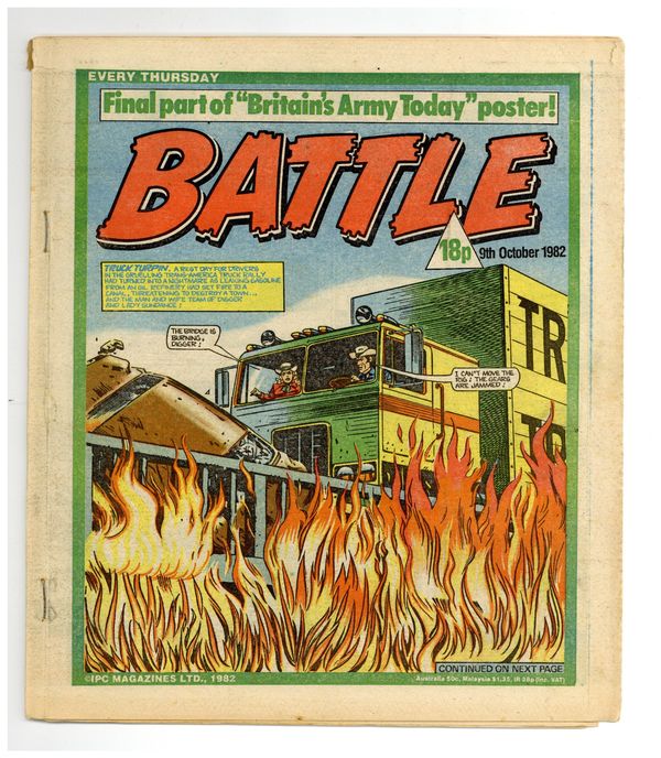October 9, 1982. Published by IPC Magazines, Ltd. in the U.K. "Tough action war stories every week!" Combined with Valiant (also an IPC publication). 9 x 11 in.; black and white (color centerspread); 32 pages; 18p cover price.