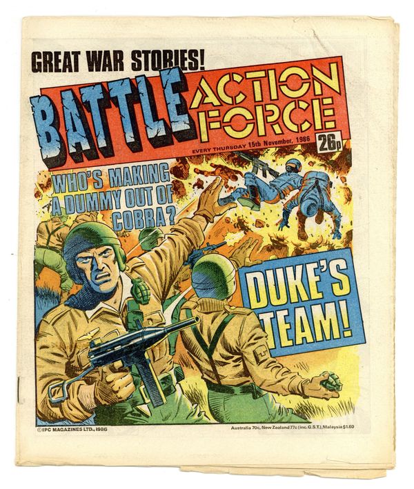November 15, 1986. Published by IPC Magazines, Ltd. in the U.K. "Tough action war stories every week!" Combined with Valiant (also an IPC publication). 9 x 11 in.; black and white (color centerspread); 32 pages; 26p cover price.