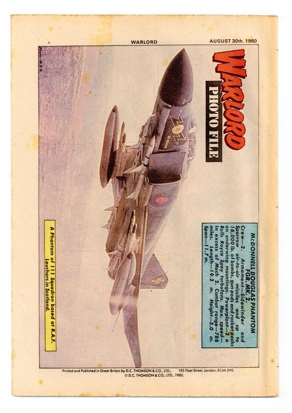 Published Aug 1980 by D.C. Thomson & Co..$2.50August 30, 1980. War stories. Newsprint (Saddle-Stitched), 8 1/2-in. x 11 1/2-in., 32 pages, B&W.