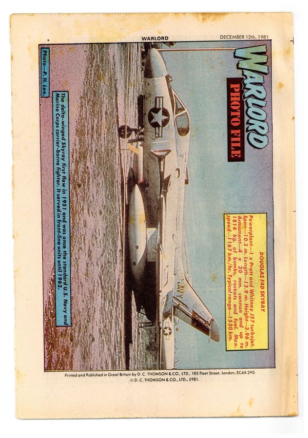 Published Dec 1981 by D.C. Thomson & Co..$9.60December 12, 1981. War stories. Newsprint (Saddle-Stitched), 8 1/2-in. x 11 1/2-in., 32 pages, B&W.