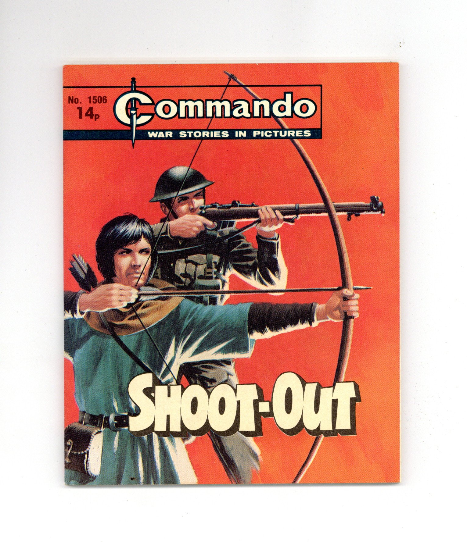 Published Apr 1981 by D. C. Thomson.$5.30Weekly British War comics digest. "Shoot-Out" Softcover, 5 1/2-in. x 6 1/2-in., 68 pages, B/W.