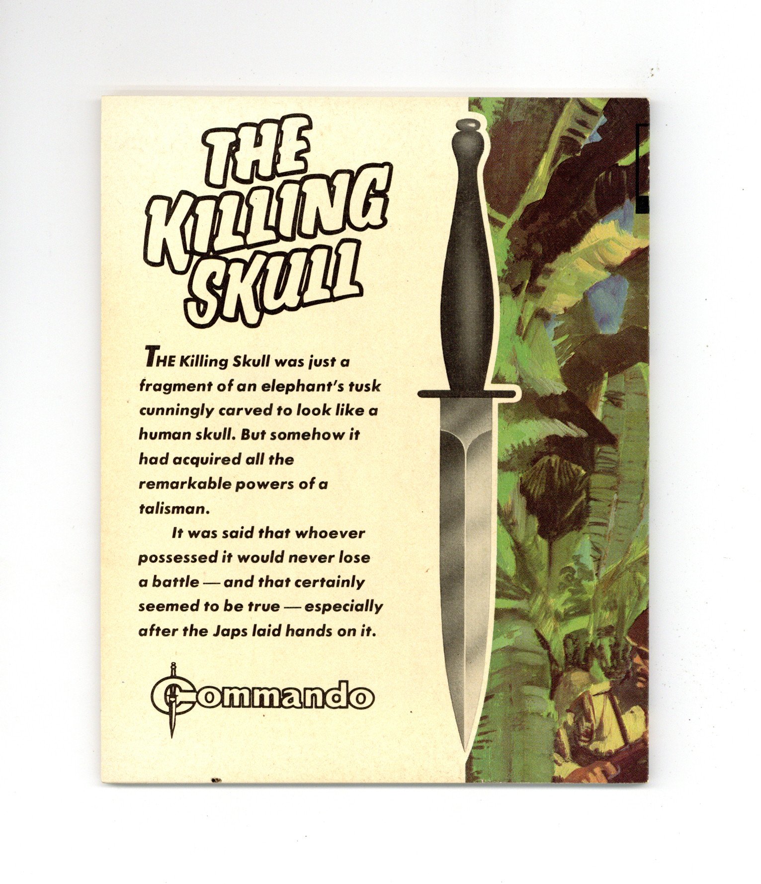 Published May 1981 by D. C. Thomson.$8.49Weekly British War comics digest. "The Killing Skull" Softcover, 5 1/2-in. x 6 1/2-in., 68 pages, B/W.
