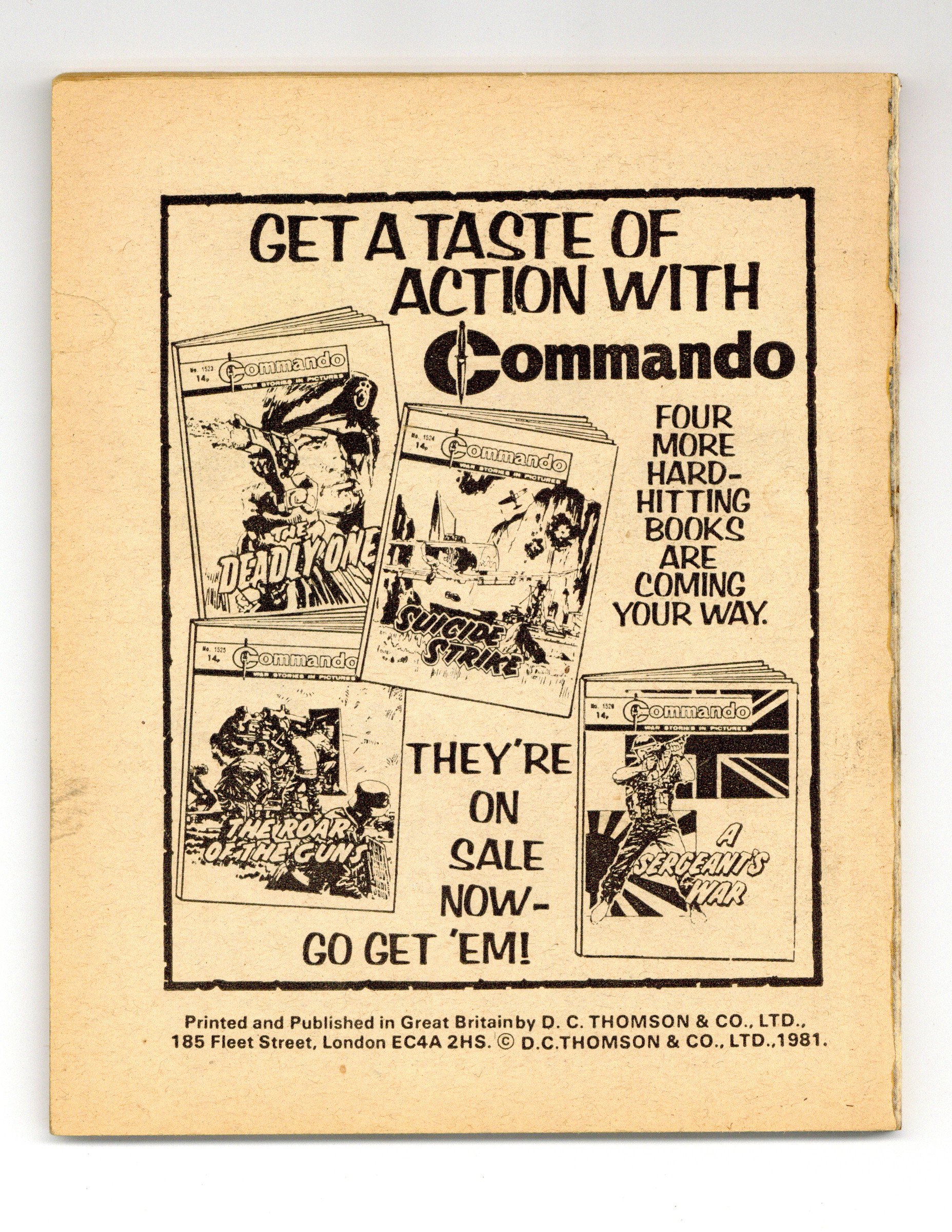 Published Jul 1981 by D. C. Thomson.$9.00Weekly British War comics digest. Softcover, 5 1/2-in. x 6 1/2-in., 68 pages, B/W.