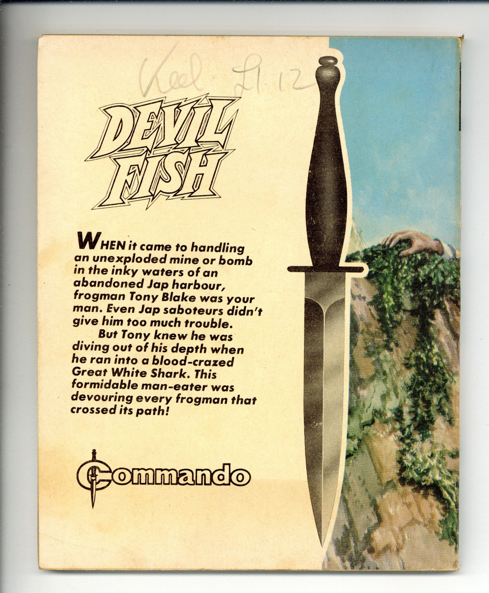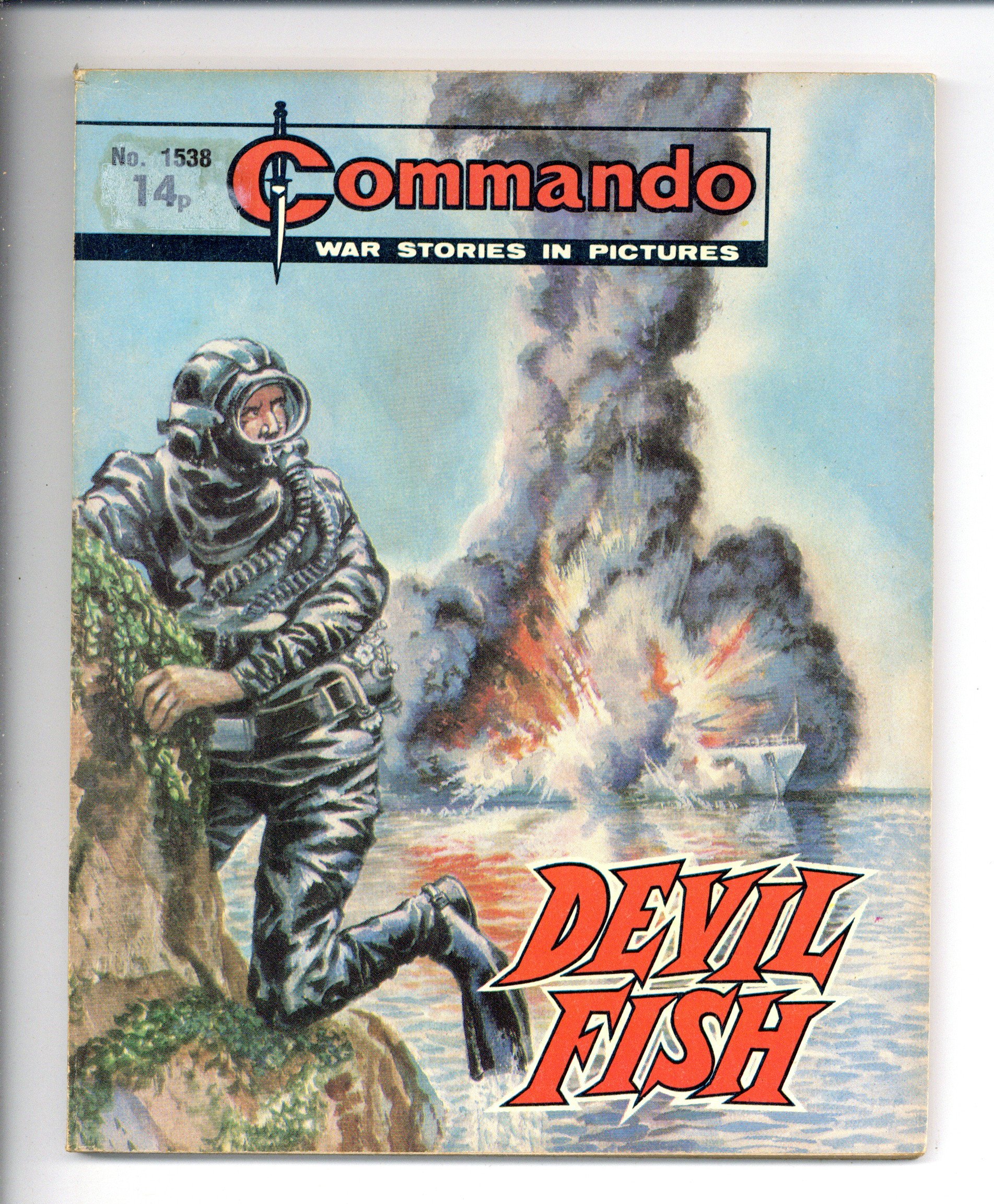 Published Aug 1981 by D. C. Thomson.$3.20Weekly British War comics digest. "Devil Fish" Softcover, 5 1/2-in. x 6 1/2-in., 68 pages, B/W.