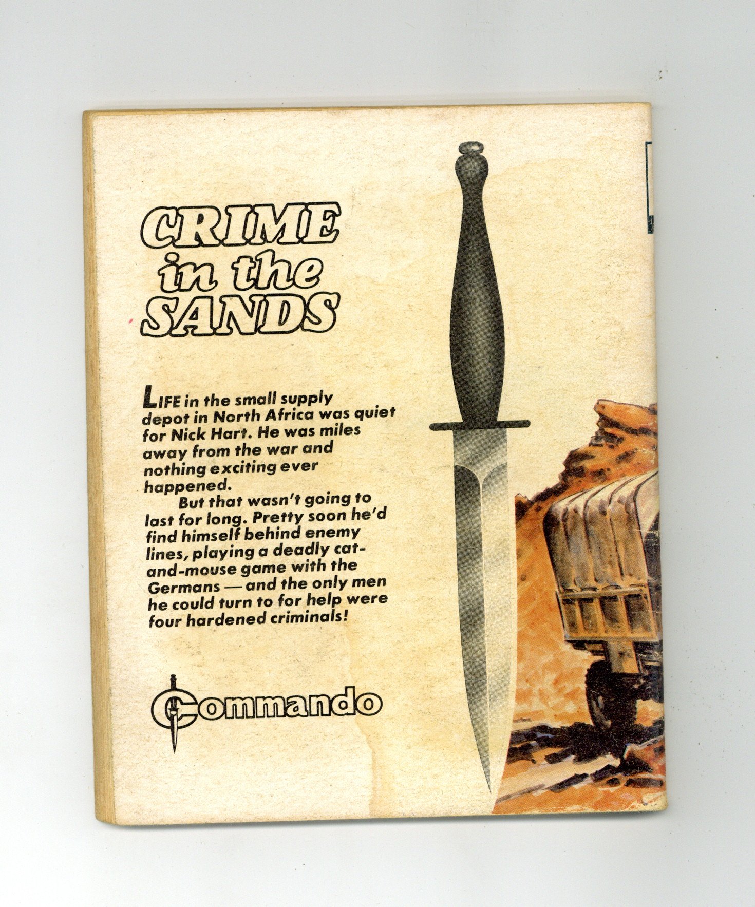 Published Jul 1982 by D. C. Thomson.$8.00Weekly British War comics digest. "Crime in the Sands" Softcover, 5 1/2-in. x 6 1/2-in., 68 pages, B/W.