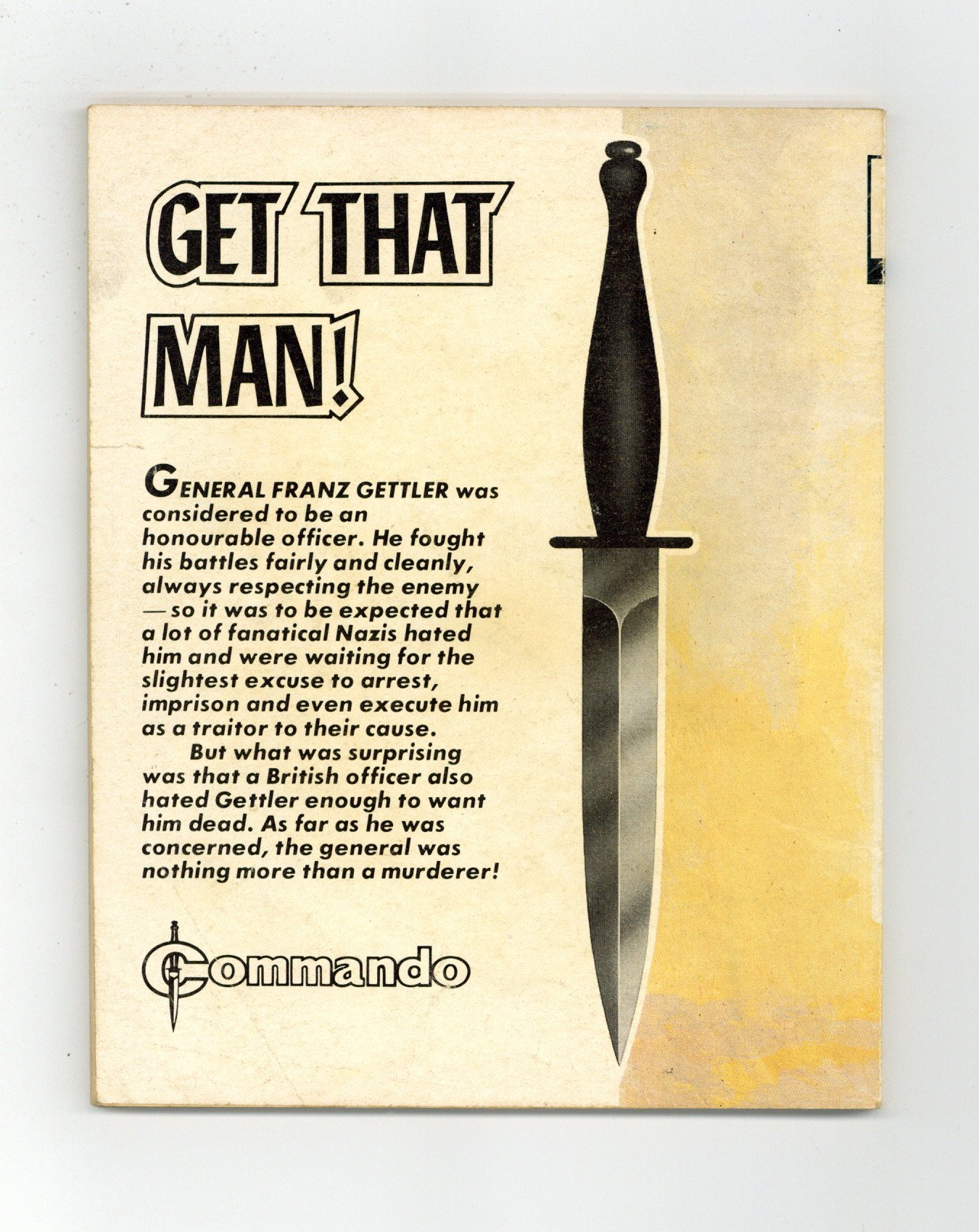 Published Sep 1983 by D. C. Thomson.$16.00Weekly British War comics digest. "Get that Man!" Softcover, 5 1/2-in. x 6 1/2-in., 68 pages, B/W.