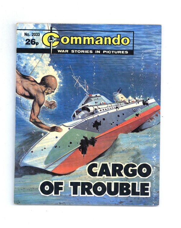 Published Oct 1986 by D. C. Thomson.$7.20Weekly British War comics digest. "Cargo of Trouble" Softcover, 5 1/2-in. x 6 1/2-in., 68 pages, B/W.