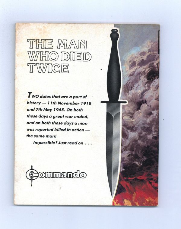 Published Nov 1986 by D. C. Thomson.$2.70Weekly British War comics digest. "The Man Who Died Twice" Softcover, 5 1/2-in. x 6 1/2-in., 68 pages, B/W.