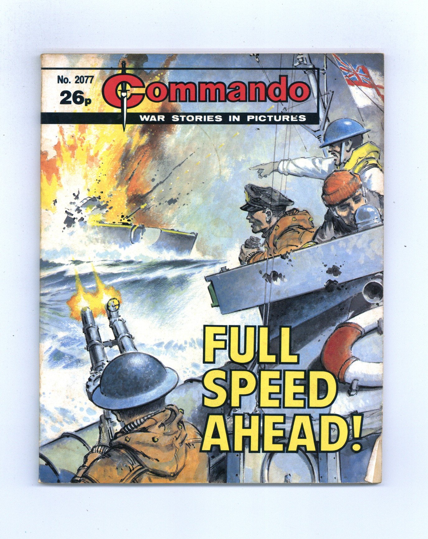 Published Apr 1987 by D. C. Thomson.$6.00Weekly British War comics digest. "Full Speed Ahead!" Softcover, 5 1/2-in. x 6 1/2-in., 68 pages, B/W.