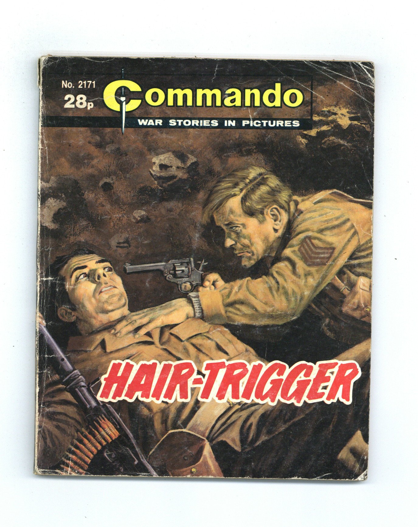 Weekly British War comics digest. "Hair-Trigger" Softcover, 5 1/2-in. x 6 1/2-in., 68 pages, B/W.