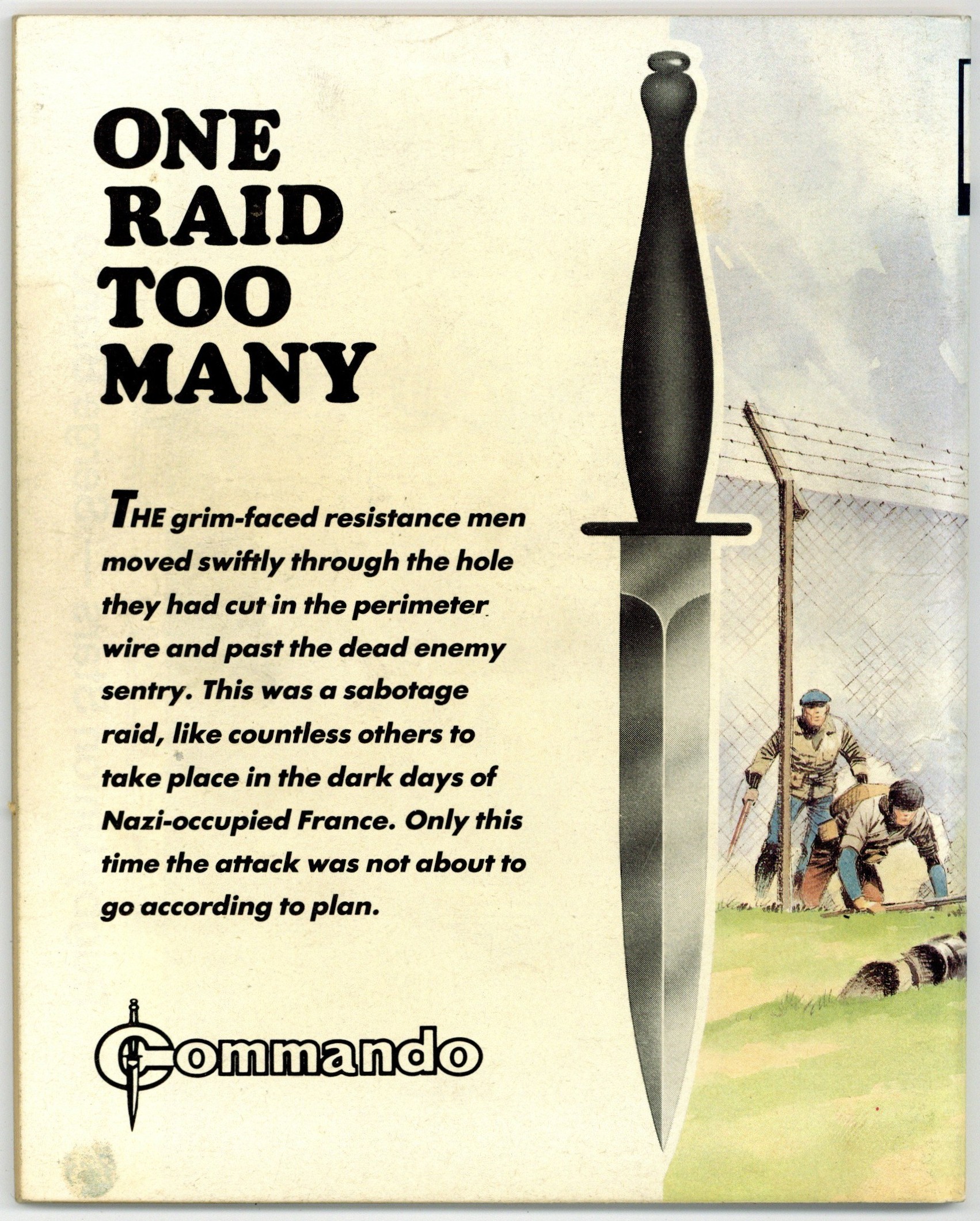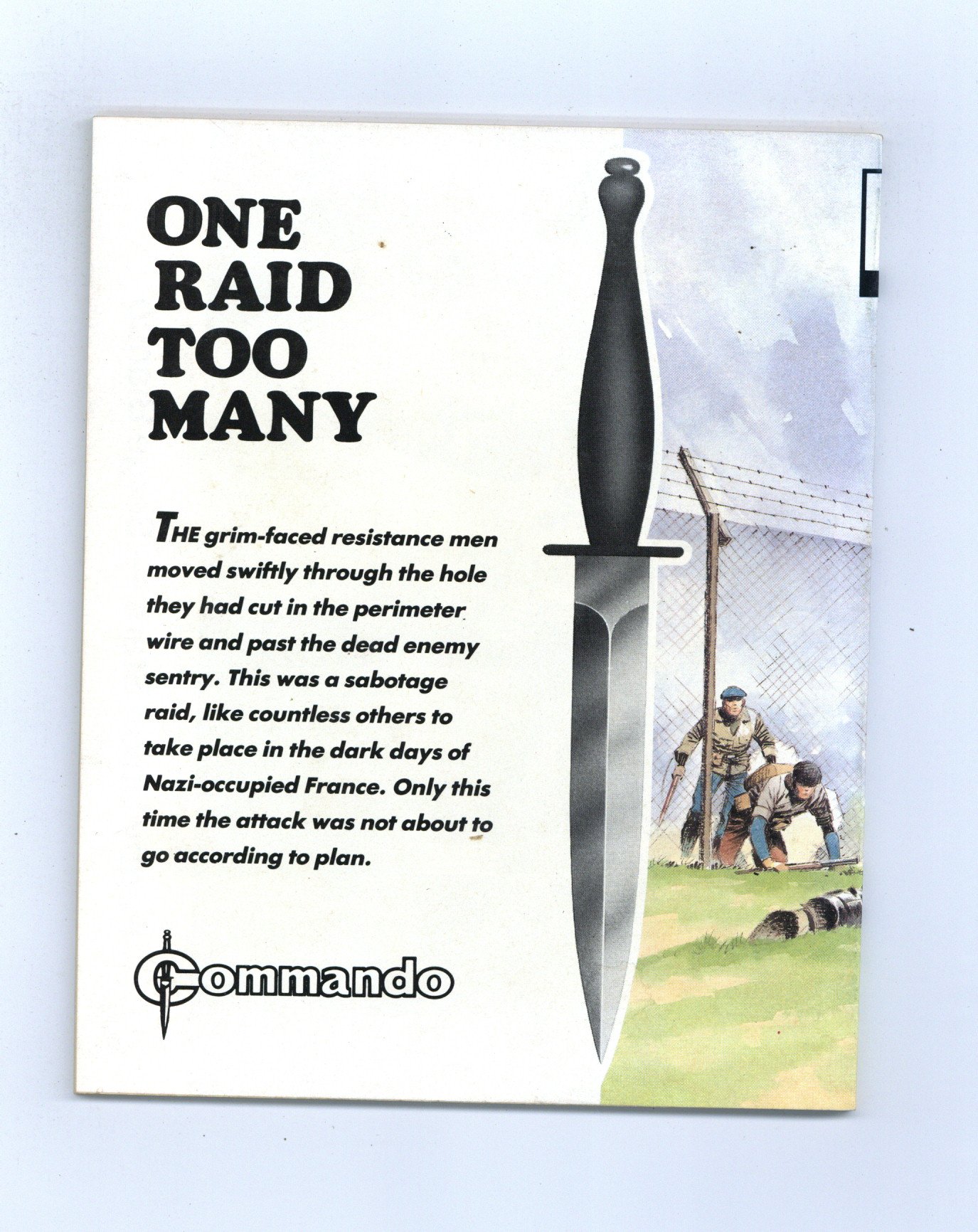 Published Aug 1988 by D. C. Thomson.$3.20Weekly British War comics digest. "One Raid Too Many" Softcover, 5 1/2-in. x 6 1/2-in., 68 pages, B/W.