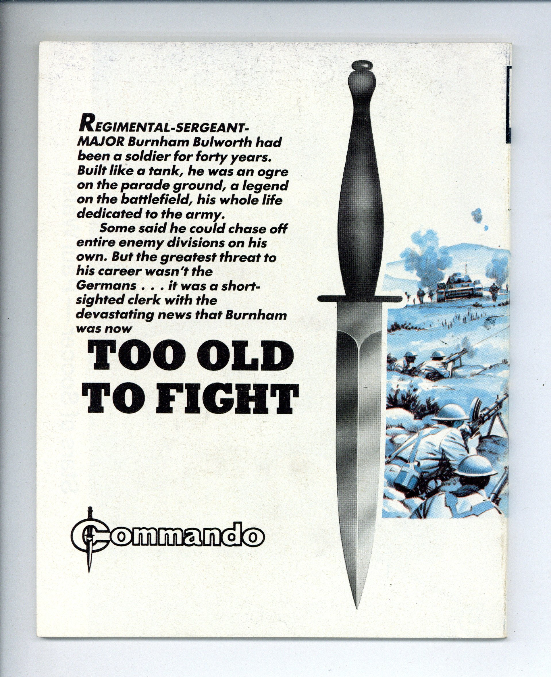 Published Mar 1989 by D. C. Thomson.$5.20Weekly British War comics digest. "Too Old to Fight" Softcover, 5 1/2-in. x 6 1/2-in., 68 pages, B/W.