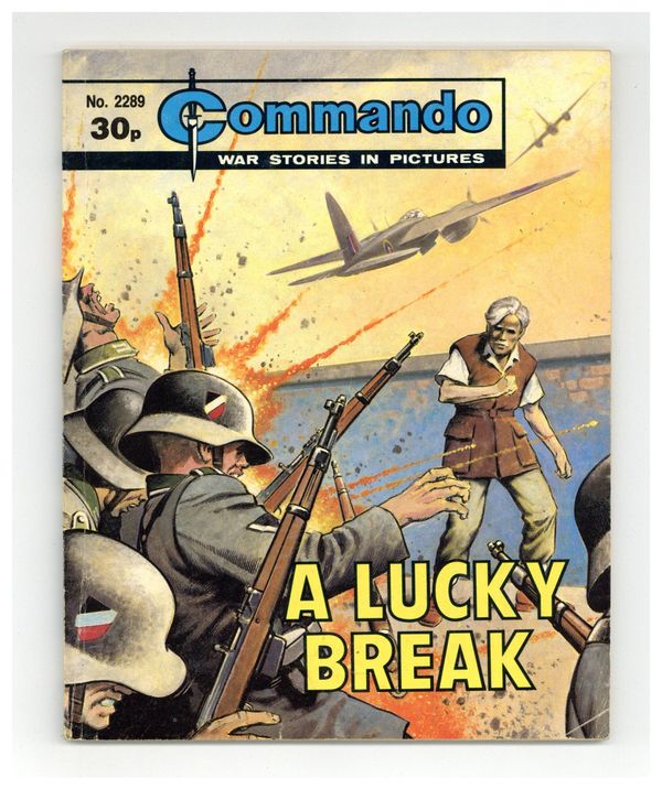 Weekly British War comics digest. "A Lucky Break" Softcover, 5 1/2-in. x 6 1/2-in., 68 pages, B/W.