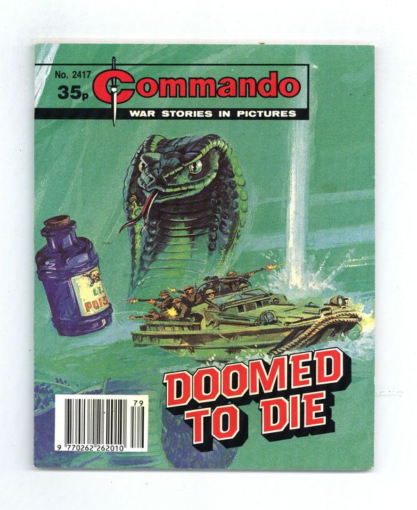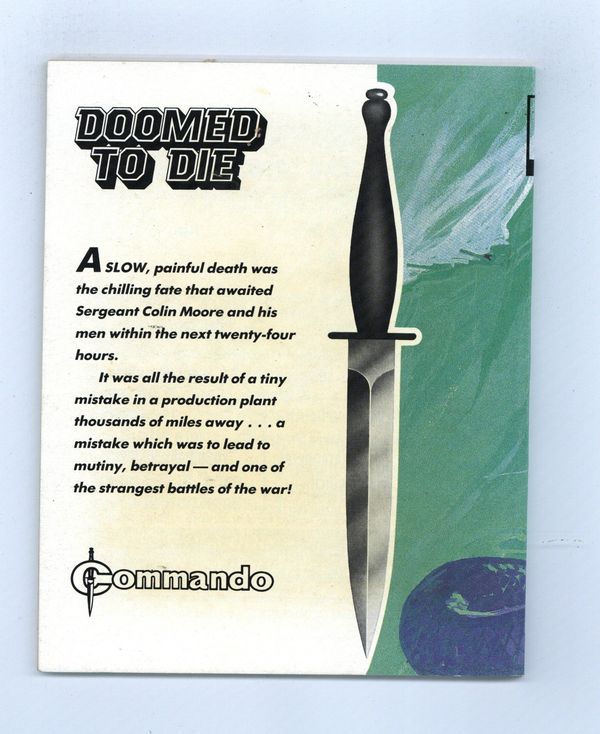 Published Oct 1990 by D. C. Thomson.$3.60Weekly British War comics digest. "Doomed to Die" Softcover, 5 1/2-in. x 6 1/2-in., 68 pages, B/W.