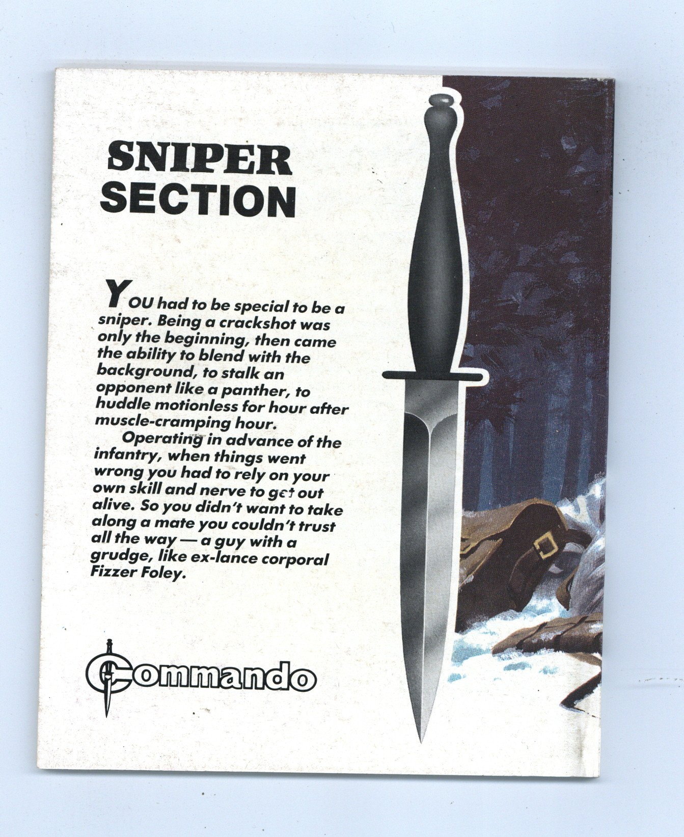Published Dec 1990 by D. C. Thomson.$8.49Weekly British War comics digest. "Sniper Section" Softcover, 5 1/2-in. x 6 1/2-in., 68 pages, B/W.