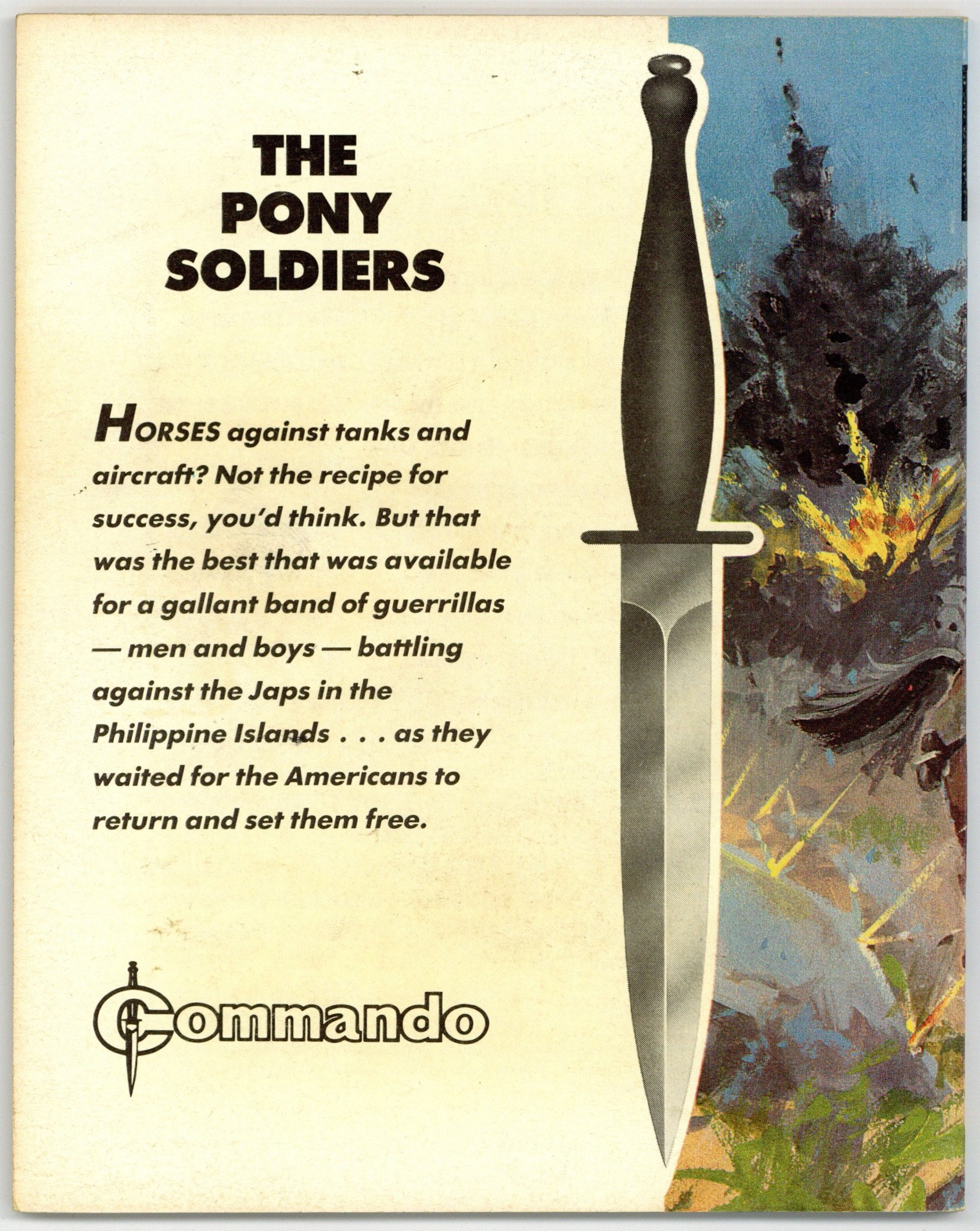 Published Mar 1991 by D. C. Thomson.$2.65Weekly British War comics digest. "The Pony Soldiers" Softcover, 5 1/2-in. x 6 1/2-in., 68 pages, B/W.