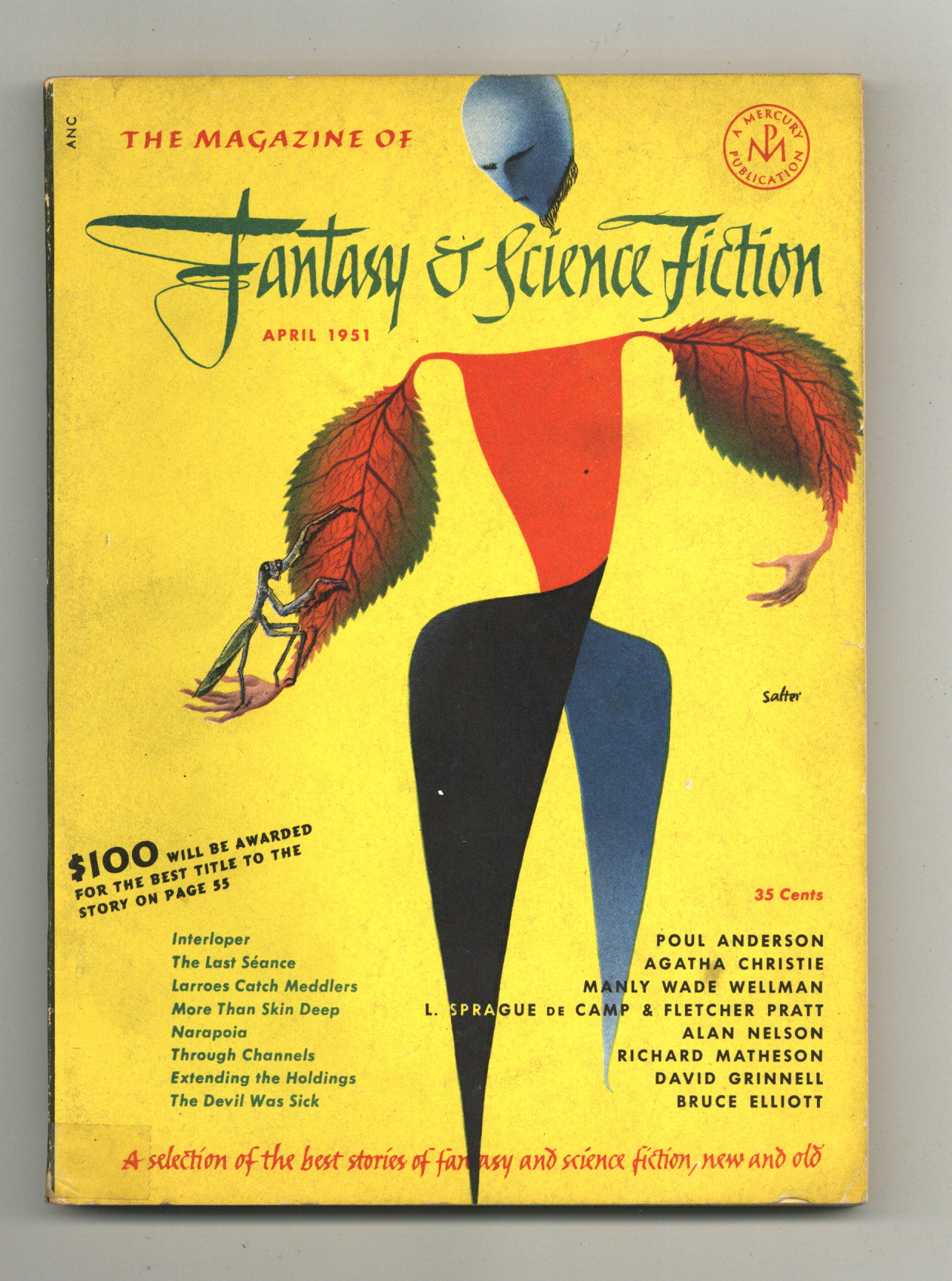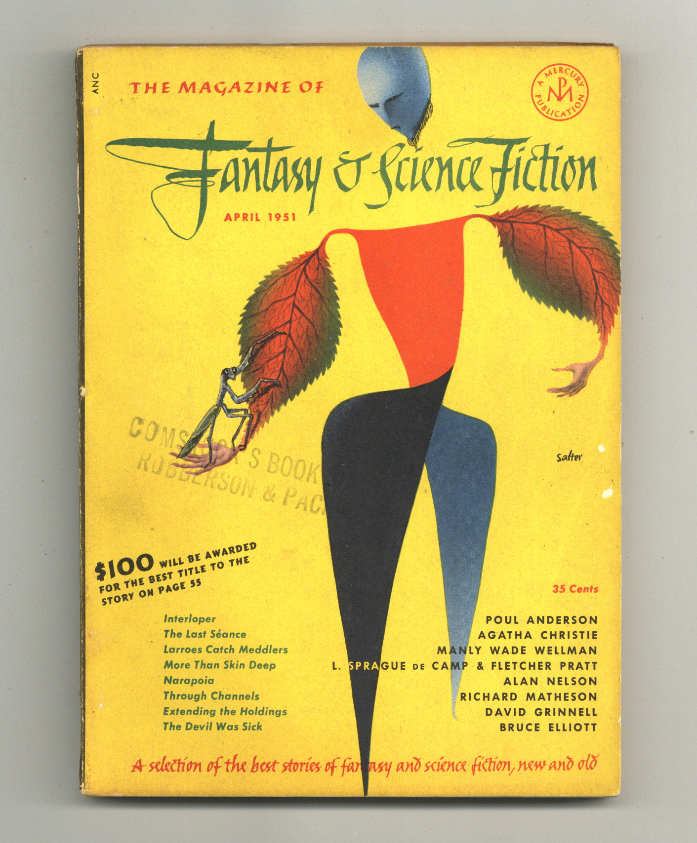 Tags: Anthology / CollectionPublished Apr 1951 by Mercury Publications.$8.80Cover by George Salter. "Through Channels" by Richard Matheson, plus other fantasy and science fiction stories by Poul Anderson, L. Sprague De Camp & Fletcher Pratt, Bruce Elliot, Idris Seabright, H. Nearing Jr, David Grinnell, Christopher Wood, R. Ellis Roberts, George Paul Elliot, Alan Nelson, and Manly Wade Wellman. Softcover. 5.5-in. x 7.5-in. 132 pages, black and white (all text). Cover price $0.35.