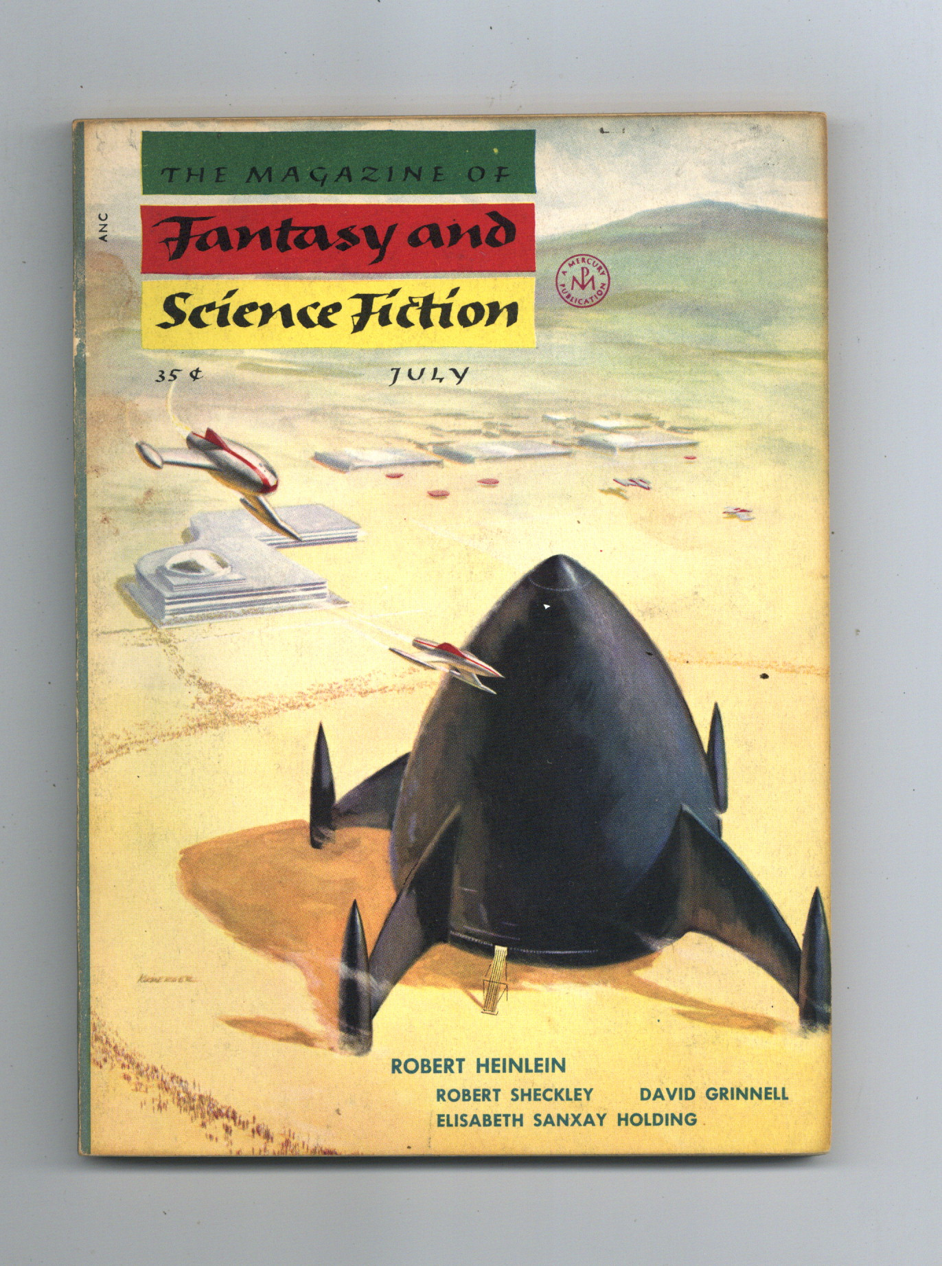 Tags: Anthology / CollectionPublished Jul 1954 by Mercury Publications.$10.00July 1954. Cover by Fred Kirberger. "Star Lummox" 3/3 by Robert A. Heinlein. Plus fantasy and science fiction stories by Elizabeth Sanxay Holding, Leonard Wolf, Robert Bare, Robert Sheckley, Sherwood Springer, Albert Compton Firborg, Leah Bodine Drake, Avram Davidson, Randall Garrett, and Donald A. Wollheim (as David Grinnell). Softcover. 5.5-in. x 7.5-in. 128 newsprint pages, black and white (all text). Cover price $0.35.