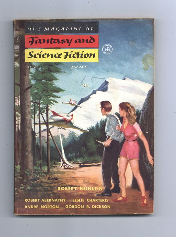 Tags: Anthology / CollectionPublished Jun 1954 by Mercury Publications.$3.60June 1954. Cover by Fred Kirberger. "Star Lummox" 3/3 by Robert A. Heinlein and "Mousetrap" by Andre Norton, plus more fantasy and science fiction stories by Robert Abernathy, Gordon R. Dickson, Michael Shaara, Leslie Charteris, Levi Crow, Ruth Laura Wainwright, and T. S. Watt. Softcover. 5.5-in. x 7.5-in. 132 pages, black and white (all text). Cover price $0.35.