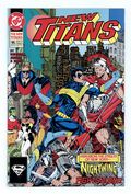 Tags: Teen Titans$2.65"...into the Fire!" Part 2 of 3. Guest-starring the Team Titans. Written by Louise Simonson. Art by Phil Jimenez and Peter Gross. In Russia Red Star continues his search for Cyborg. Meanwhile back in New York, Nightwing is attacked by techno-terrorists. NOTE: New Teen Titans (1984- 2nd Series) #94-96 have interlocking covers Cover price $1.75.