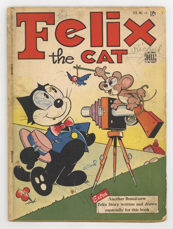 Stories and art by Otto Messmer and Joe Oriolo. Comics adventures of the popular, long-running cartoon character; this series often featured art by the two men most associated with Felix, Otto Messmer and Joe Oriolo. In a dream, Felix enters the world of the playing cards and meets kings, queens and jacks. Felix decides to start collecting celebrity autographs. Misdeal; Rainbow's End; Laffographs; Bruin Trouble; Herman and Sherman. 52 pages, Full Color. Cover price $0.10.