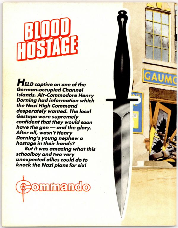 Weekly British War comics digest. "Blood Hostage" Softcover, 5 1/2-in. x 6 1/2-in., 68 pages, B/W.