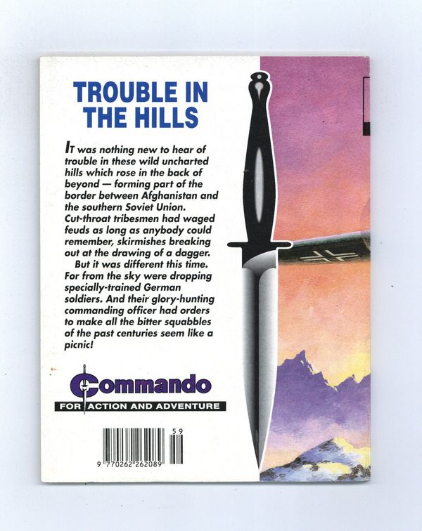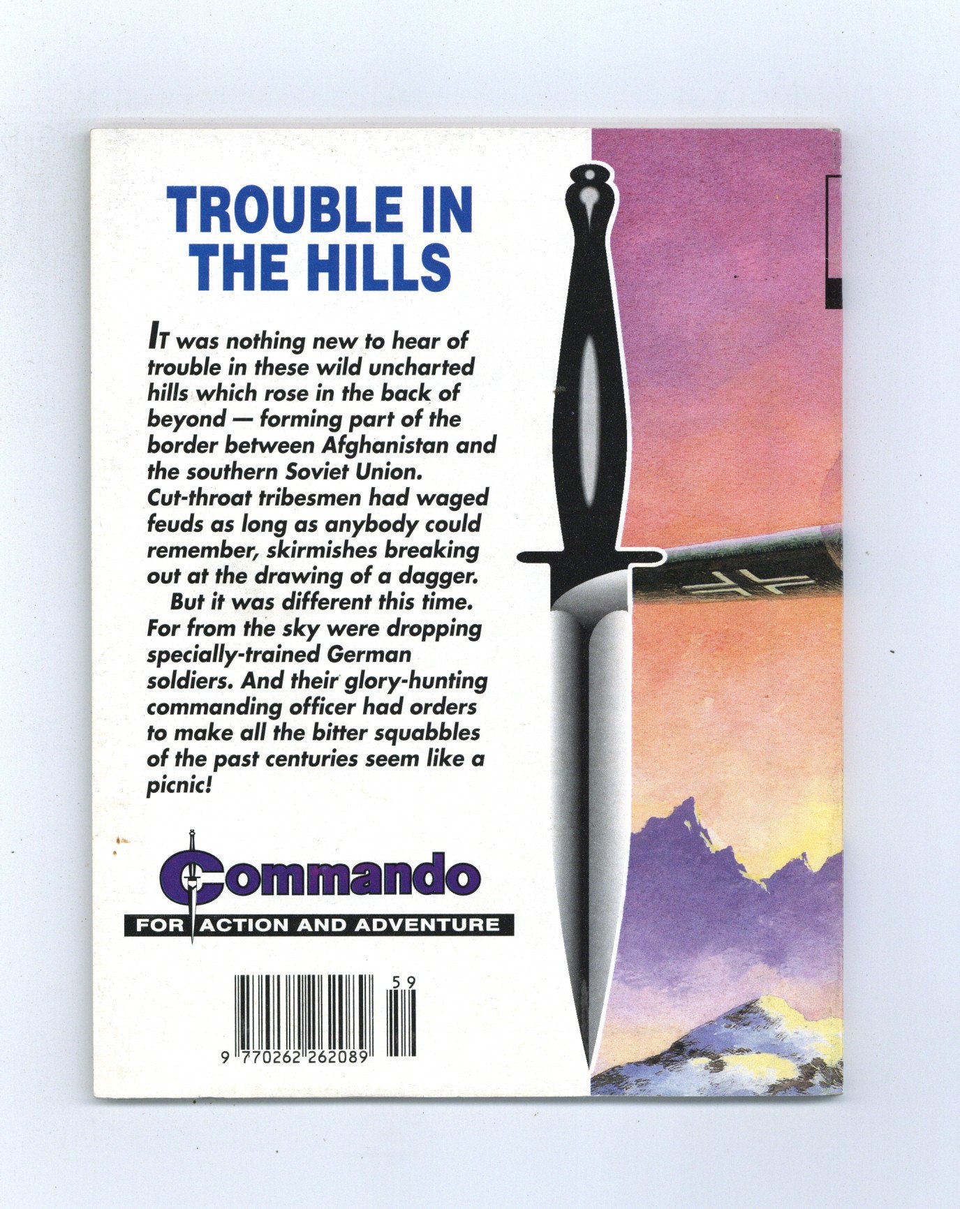 Published Aug 2000 by D. C. Thomson & Co..$6.80Weekly British War comics digest. "Trouble in the Hills" Softcover, 5 1/2-in. x 6 1/2-in., 68 pages, B/W.