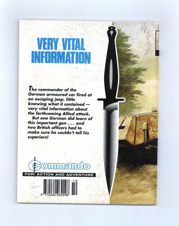 Published May 2001 by D. C. Thomson & Co..$8.00Weekly British War comics digest. "Very Vital Information" Softcover, 5 1/2-in. x 6 1/2-in., 68 pages, B/W.