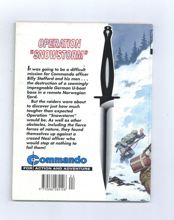 Published Dec 2004 by D. C. Thomson & Co..$6.80Weekly British War comics digest. "Operation 'Snowstorm'" Softcover, 5 1/2-in. x 6 1/2-in., 68 pages, B/W.