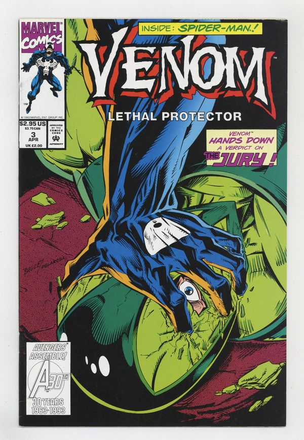 Tags: Marvel Legacy Numbering: Venom (part 3)$5.30Direct Edition. The families of Venom's victims unite, vowing to kill him. Spider-Man's hot on Venom's trail, too, while secrets are revealed about Eddie Brock's past. Written by David Michelinie. Art by Mark Bagley, Sam de la Rosa and Al Milgrom. Cover by Mark Bagley and Sam de la Rosa. Cover price $2.95.