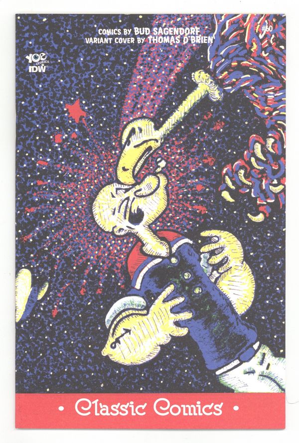 Published Jul 2017 by IDW Publishing.$35.00Limited 1 for 10 Retailer Incentive Variant Cover. Story and Art by Bud Sagendorf. Cover by Tommy O'brien. The classic Bud Sagendorf stories just keep getting nuttier, crazier, and funnier! Olive pits Popeye and Bluto against each other because she wants to … BUILD A WALL! More stories: one with a saucy mermaid that P.O.'s Olive, another with O.G. Wotasnozzle. Plus TWO MORE FEATURES! 32 pages, full color. Cover price $4.99.