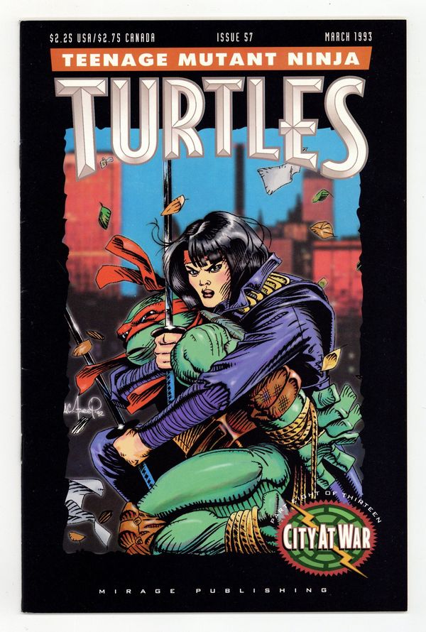 City At War, Part 8. Karai offers the Turtles a deal. Story by Kevin Eastman, Peter Laird and Jim Lawson; art by Lawson. Black and white; 32 pages. Cover by A.C. Farley. Cover price $2.25. Cover price $2.25.