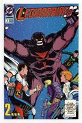 The battle in the sewers beneath Metropolis intensifies as the hulking, monstrous Mordecai injures one of the Legionnaires and captures another. Plus, the Persuader returns to break Mano out of prison, and an amazing Emerald transformation bodes ill for the Legionnaires as Fatal Five members continue to reappear. Written by Tom and Mary Bierbaum, with art and cover by Chris Sprouse and Karl Story. The covers of #2-6 link to form a panorama of the Legionnaires against the Fatal Five. Cover price $1.25.