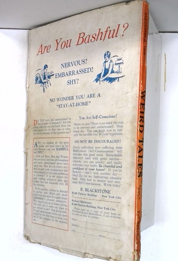 Tags: Anthology / CollectionPublished Sep 1929 by Weird Tales.$450.00- Paper: Cream