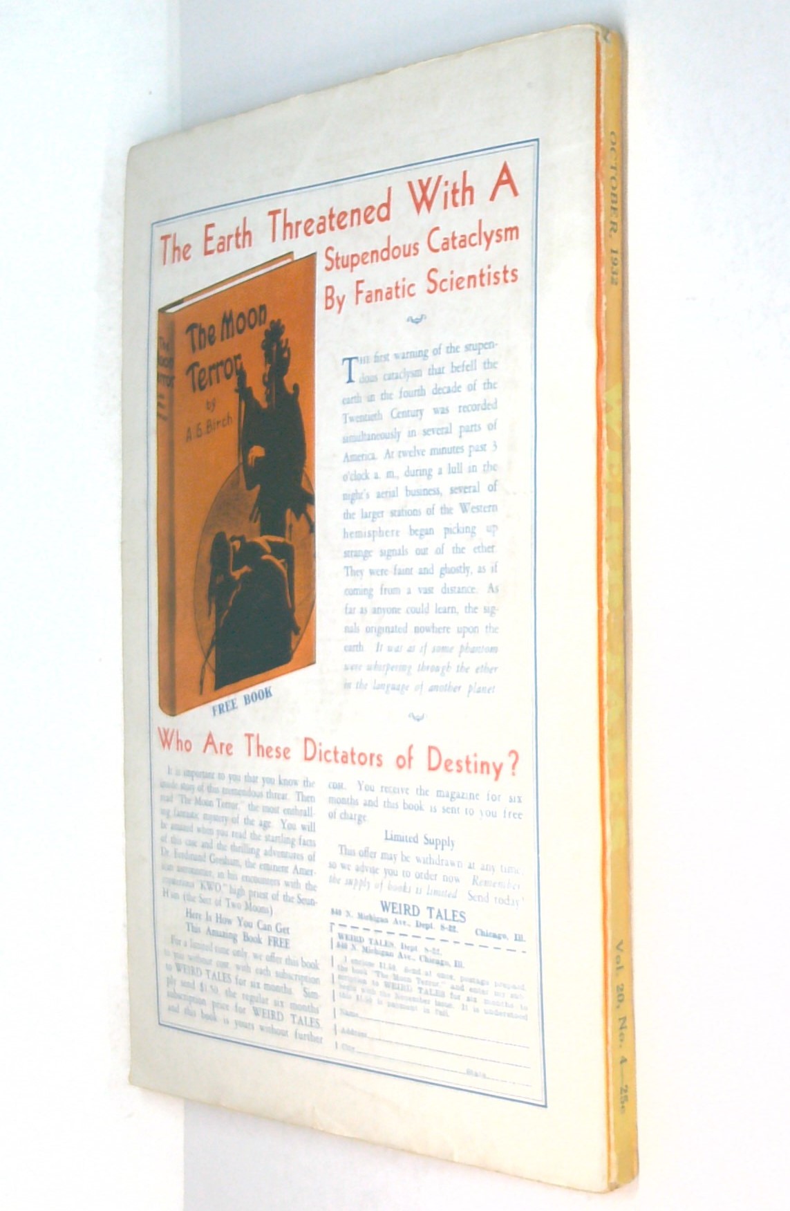 Volume 20, Issue 4 - October 1932. Edited by Farnsworth Wright. Horror and Fantasy stories in the pulp style. 6.75-in. x 10-in.; 128 newsprint pages, text (with B&W illustrations). Cover price $0.25.