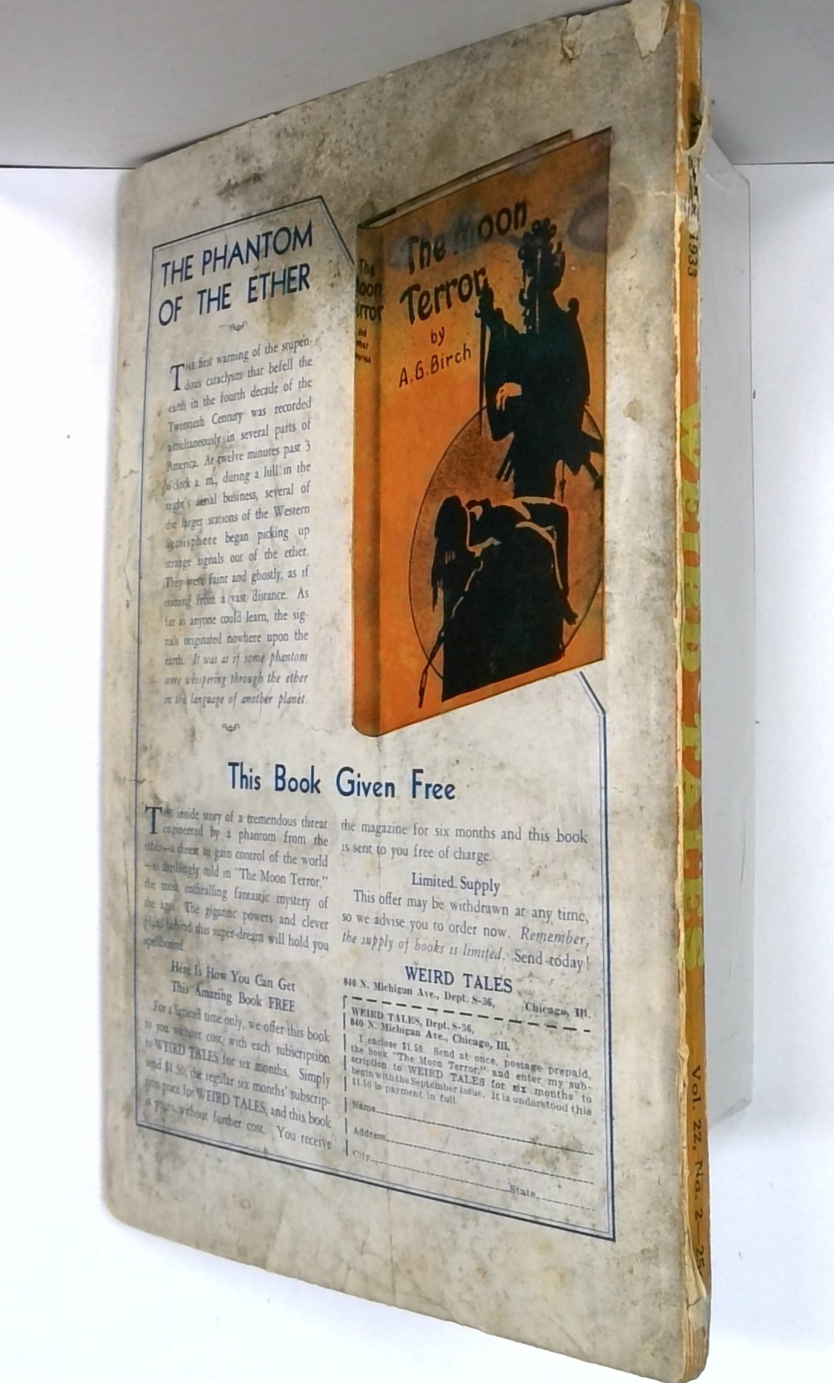 Volume 22, Issue 2 - August 1933. Edited by Farnsworth Wright. Horror and Fantasy stories in the pulp style. 6.75-in. x 10-in.; 128 newsprint pages, text (with B&W illustrations). Cover price $0.25.
