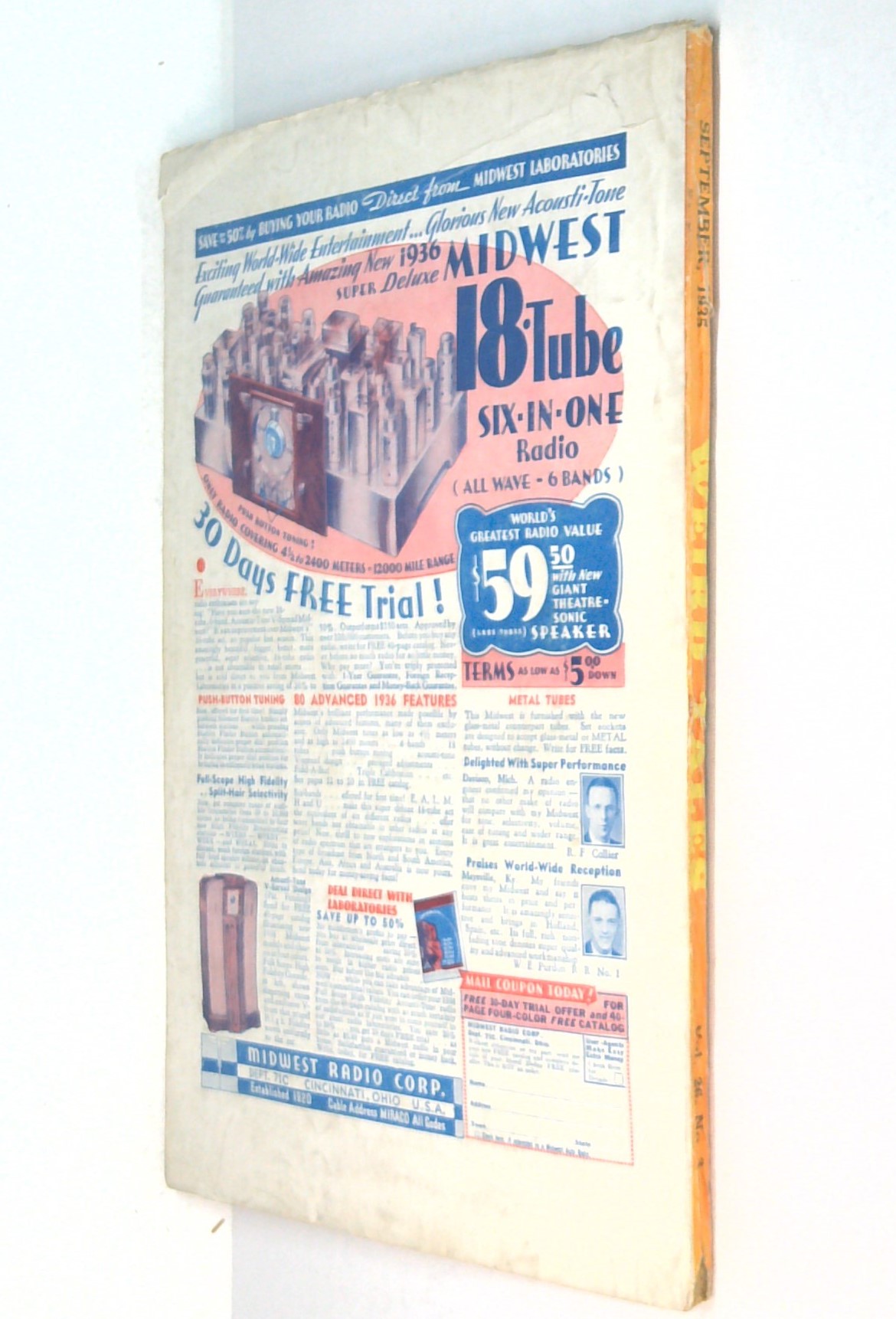 Volume 26, Issue 3 - September 1935. Edited by Farnsworth Wright. Horror and Fantasy stories in the pulp style. Cover by M. Brundage. "The Shambler from the Stars" by Robert Bloch. 6.75-in. x 10-in.; 128 newsprint pages, text (with B&W illustrations). Cover price $0.25.