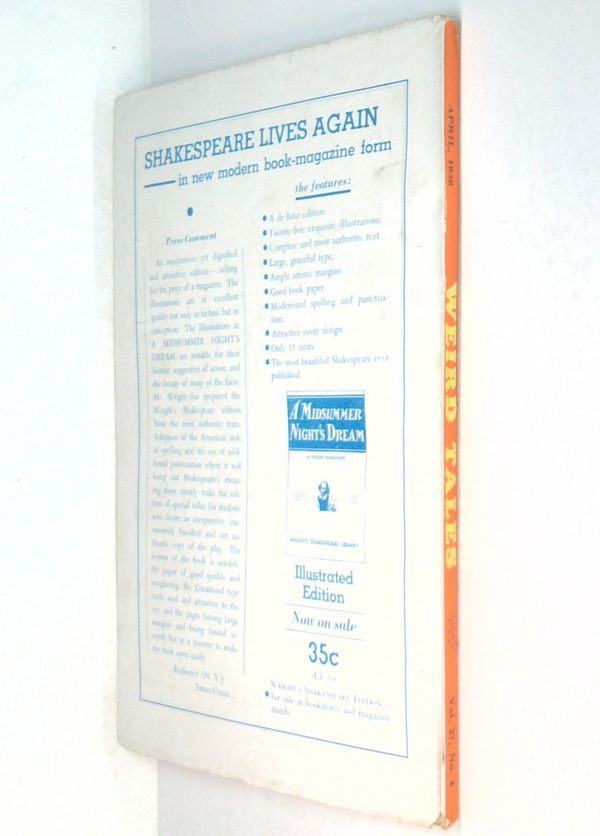 Volume 27, Issue 4 - April, 1936. Edited by Farnsworth Wright. Horror and Fantasy stories in the pulp style. 6.75-in. x 10-in.; 128 newsprint pages, text (with B&W illustrations). Cover price $0.25.