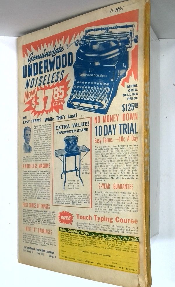 Volume 36, Issue 2 - November 1941. Edited by Dorothy McIlwraith. Horror and Fantasy stories in the pulp style. 6.75-in. x 10-in.; 128 newsprint pages, text (with B&W illustrations). Cover price $0.15.