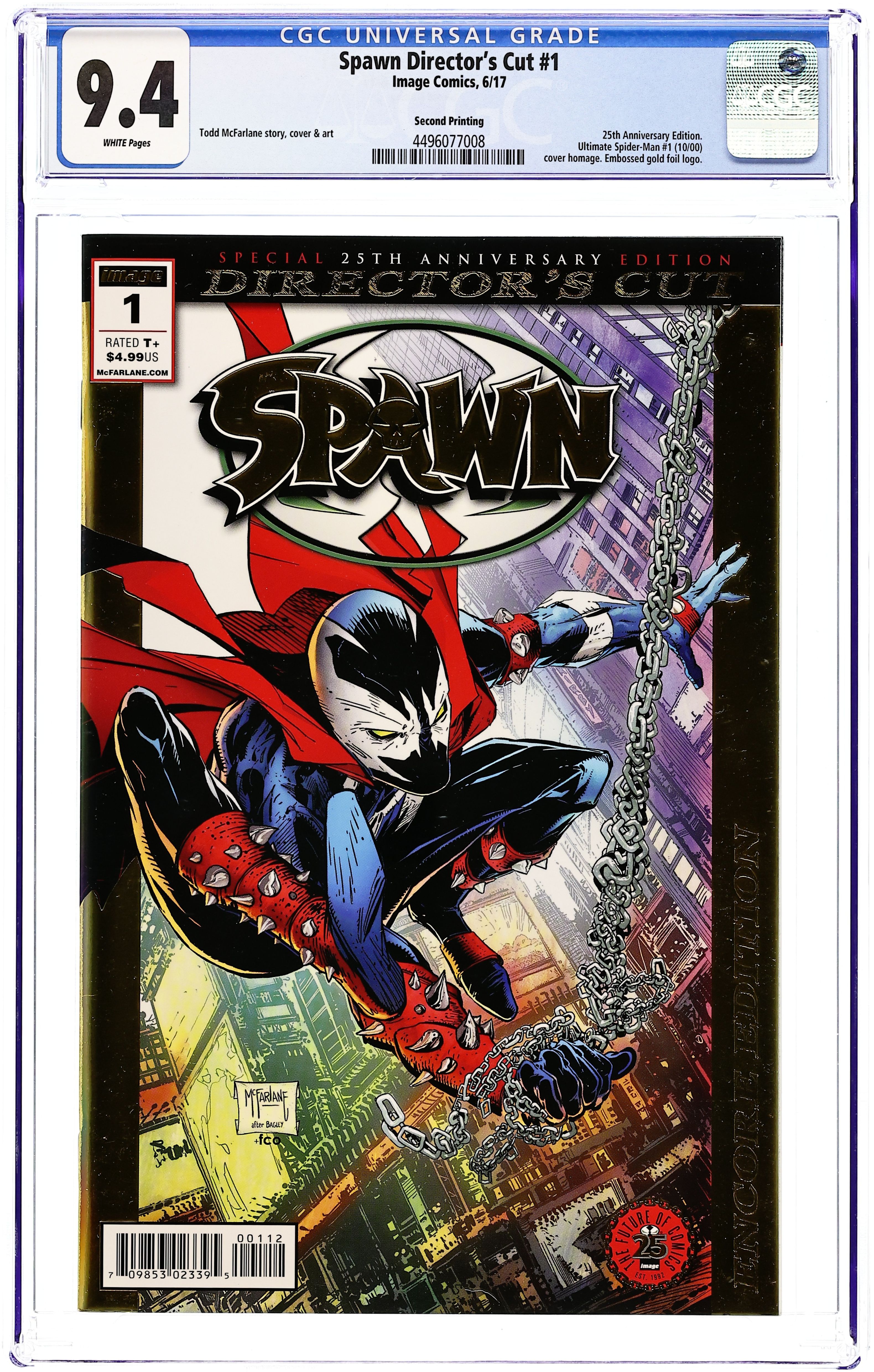Foil Encore Edition. Story, Art and Cover by Todd McFarlane. 2017 marks the 25th anniversary of SPAWN, created by TODD McFARLANE. Spawn debuted to the public, selling 1.7 million copies in 1992 and is on track to be the longest running independent comic ever. Director's Cut edition of SPAWN #1 includes: Original SPAWN #1 art boards, Page commentary by TODD McFARLANE. Vintage surprises from the early days of SPAWN. 36 pages, PC/PB&W. Cover price $4.99.
