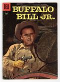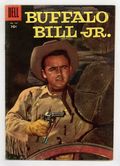$8.00Art back cover. Indicia title is "BUFFALO BILL JR., No. 742." Photo cover of Buffalo Bill Jr. (as played by Dick Jones). Intro with photos of Buffalo Bill Jr. (as played by Dick Jones), Chief (horse), and Calamity (as played by Nancy Gilbert). Gun Talk, art by Bob Correa; The leader of a trio of bank robbers threatens to expose Garry Holden, who helped them on a job ten years ago, but who has went straight since then. Wanted: Kid Curry, art by Bob Correa; Buffalo Bill Jr. and his Indian friend Cloudy Morning join a posse to track down killer Kid Curry. 36 pages, full color. Cover price $0.10.