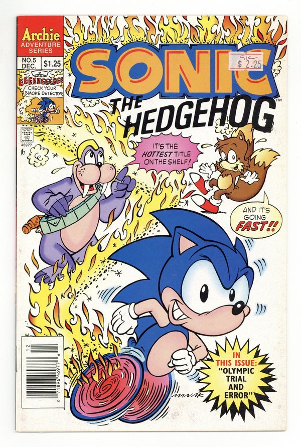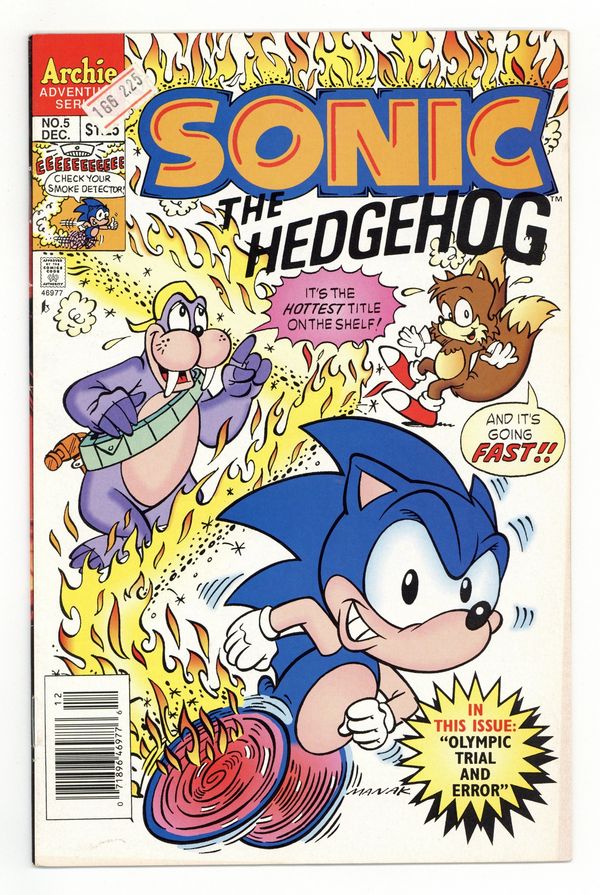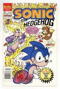 Published Dec 1993 by Archie Publications.$23.00Cover art by Dave Manak. Olympic Trials And Errors, script by Angelo DeCesare; Dr. Robotnik challenges the rebels to an Olympic-style games, promising to return the planet to normal should they win. Sonic's Ten Second Workout. Chomp On This, Chump; Dr. Robotnik sets a robot super-termite loose to destroy the forest hiding place of Sonic and his friends. Fast Food. Pencils by Manak, inks by Jon D'Agostino. Inspired by the Sega Genesis videogame. 36 pgs. $1.25. Cover price $1.25.