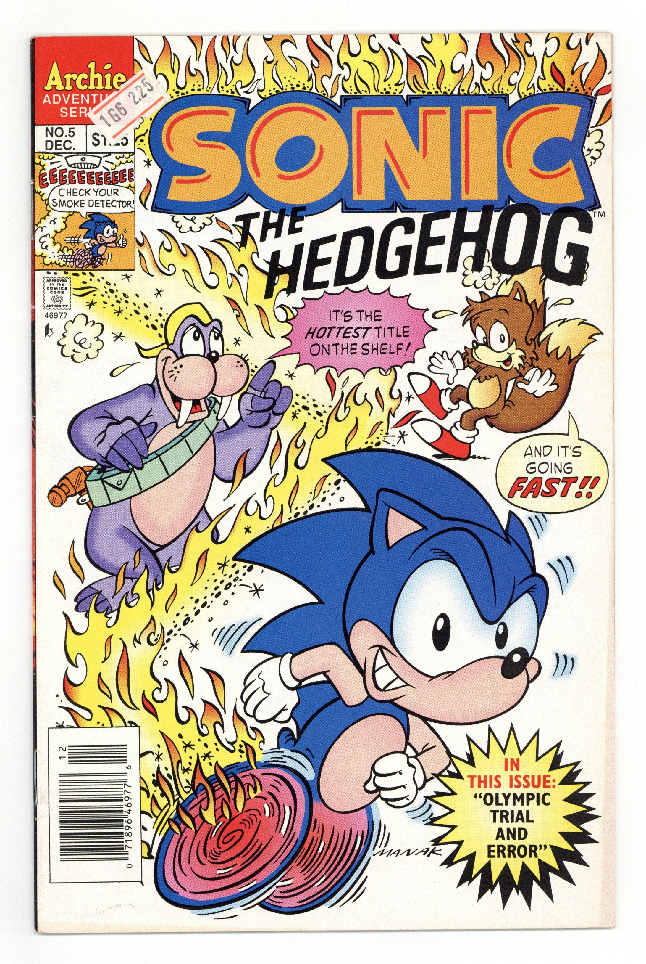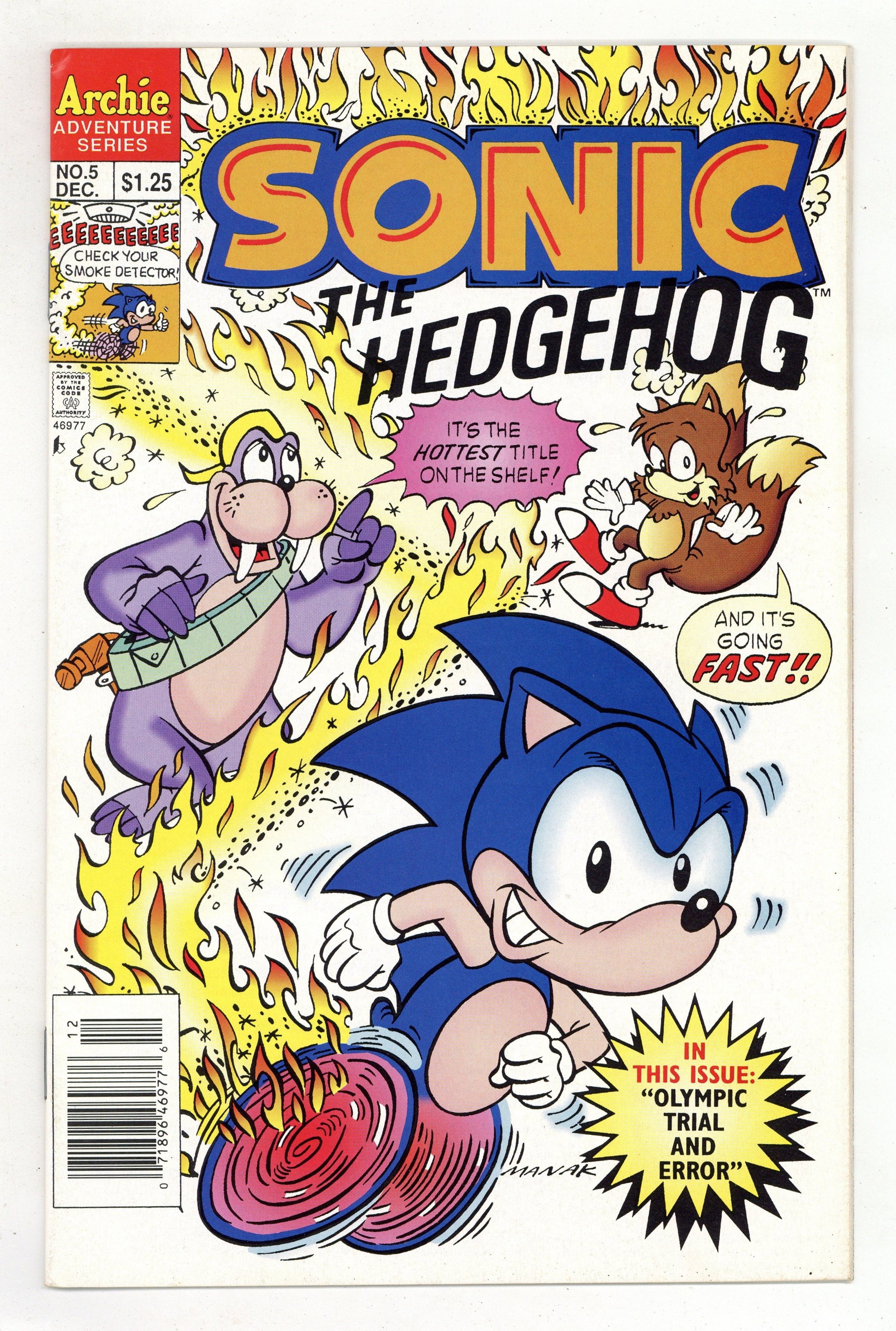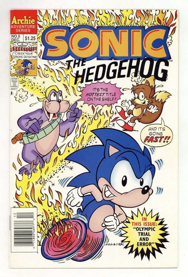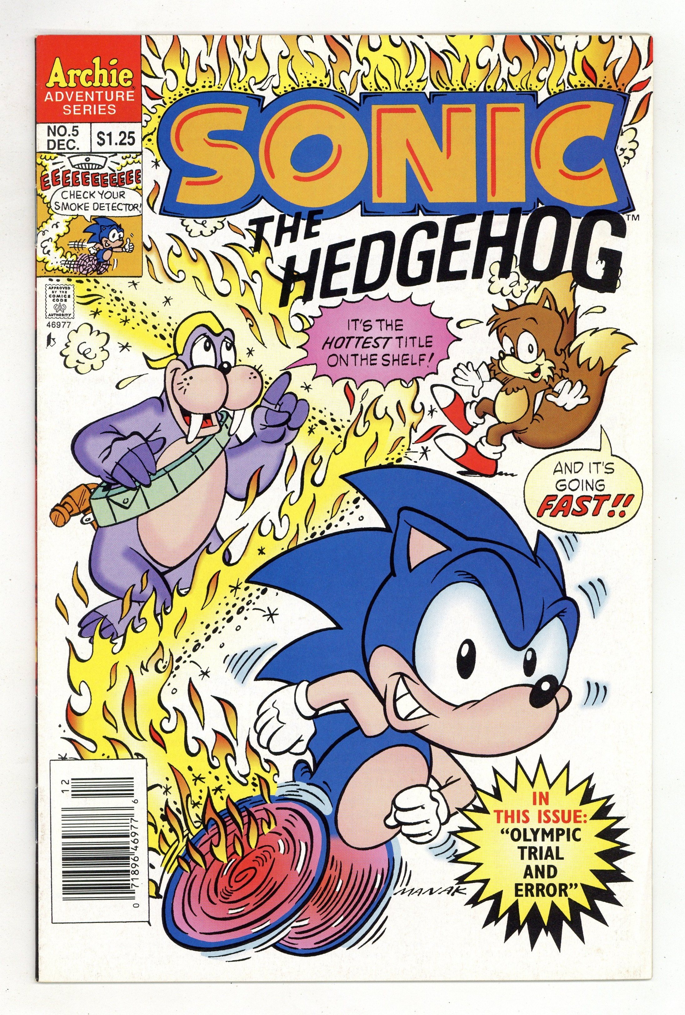 Cover art by Dave Manak. Olympic Trials And Errors, script by Angelo DeCesare; Dr. Robotnik challenges the rebels to an Olympic-style games, promising to return the planet to normal should they win. Sonic's Ten Second Workout. Chomp On This, Chump; Dr. Robotnik sets a robot super-termite loose to destroy the forest hiding place of Sonic and his friends. Fast Food. Pencils by Manak, inks by Jon D'Agostino. Inspired by the Sega Genesis videogame. 36 pgs. $1.25. Cover price $1.25.