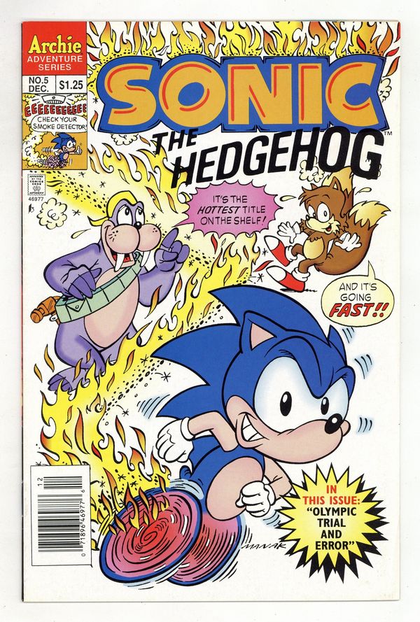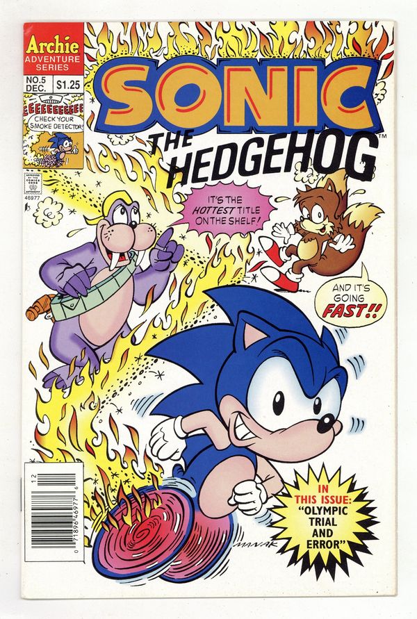 Published Dec 1993 by Archie Publications.$30.00Cover art by Dave Manak. Olympic Trials And Errors, script by Angelo DeCesare; Dr. Robotnik challenges the rebels to an Olympic-style games, promising to return the planet to normal should they win. Sonic's Ten Second Workout. Chomp On This, Chump; Dr. Robotnik sets a robot super-termite loose to destroy the forest hiding place of Sonic and his friends. Fast Food. Pencils by Manak, inks by Jon D'Agostino. Inspired by the Sega Genesis videogame. 36 pgs. $1.25. Cover price $1.25.