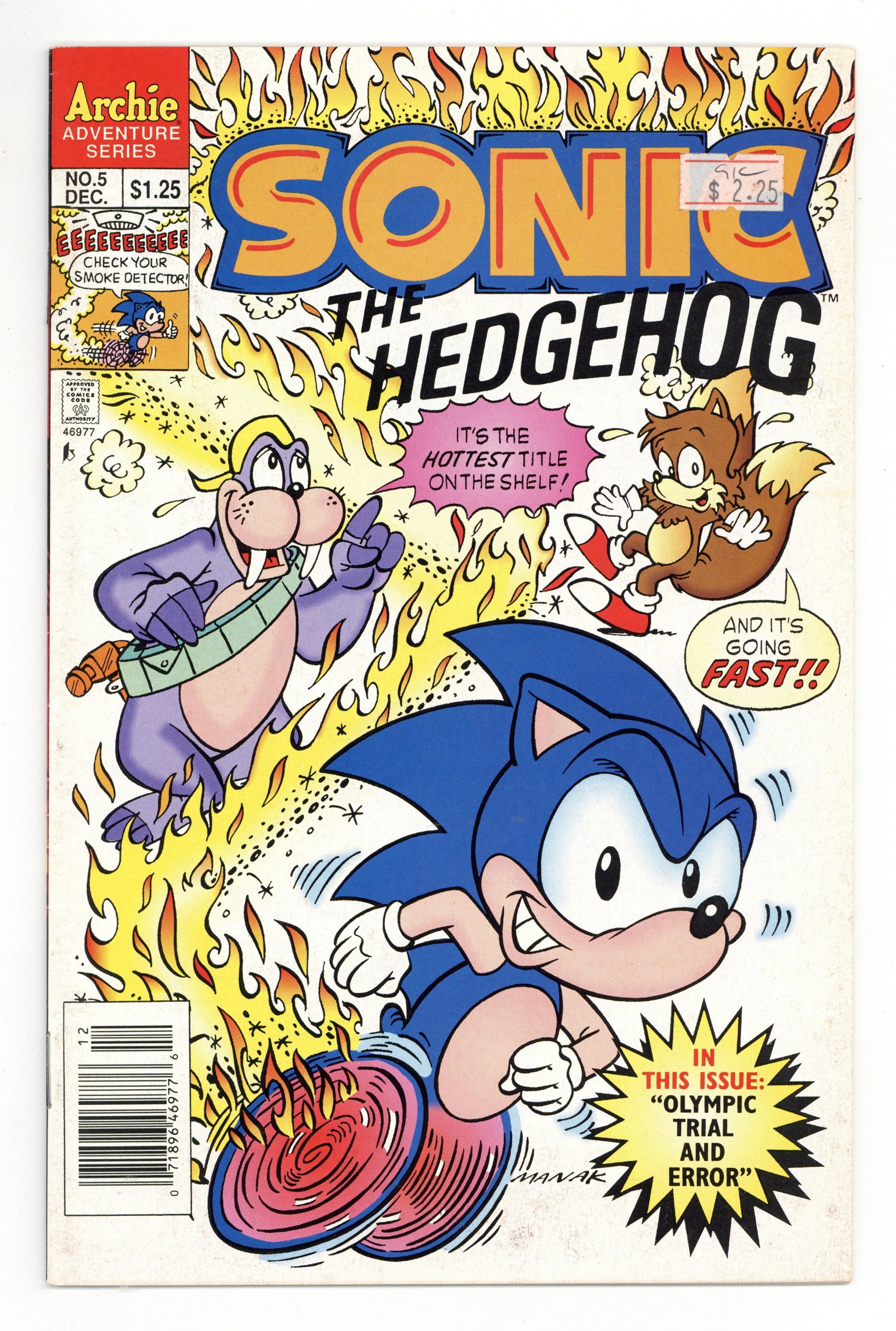 Published Dec 1993 by Archie Publications.$27.00Cover art by Dave Manak. Olympic Trials And Errors, script by Angelo DeCesare; Dr. Robotnik challenges the rebels to an Olympic-style games, promising to return the planet to normal should they win. Sonic's Ten Second Workout. Chomp On This, Chump; Dr. Robotnik sets a robot super-termite loose to destroy the forest hiding place of Sonic and his friends. Fast Food. Pencils by Manak, inks by Jon D'Agostino. Inspired by the Sega Genesis videogame. 36 pgs. $1.25. Cover price $1.25.