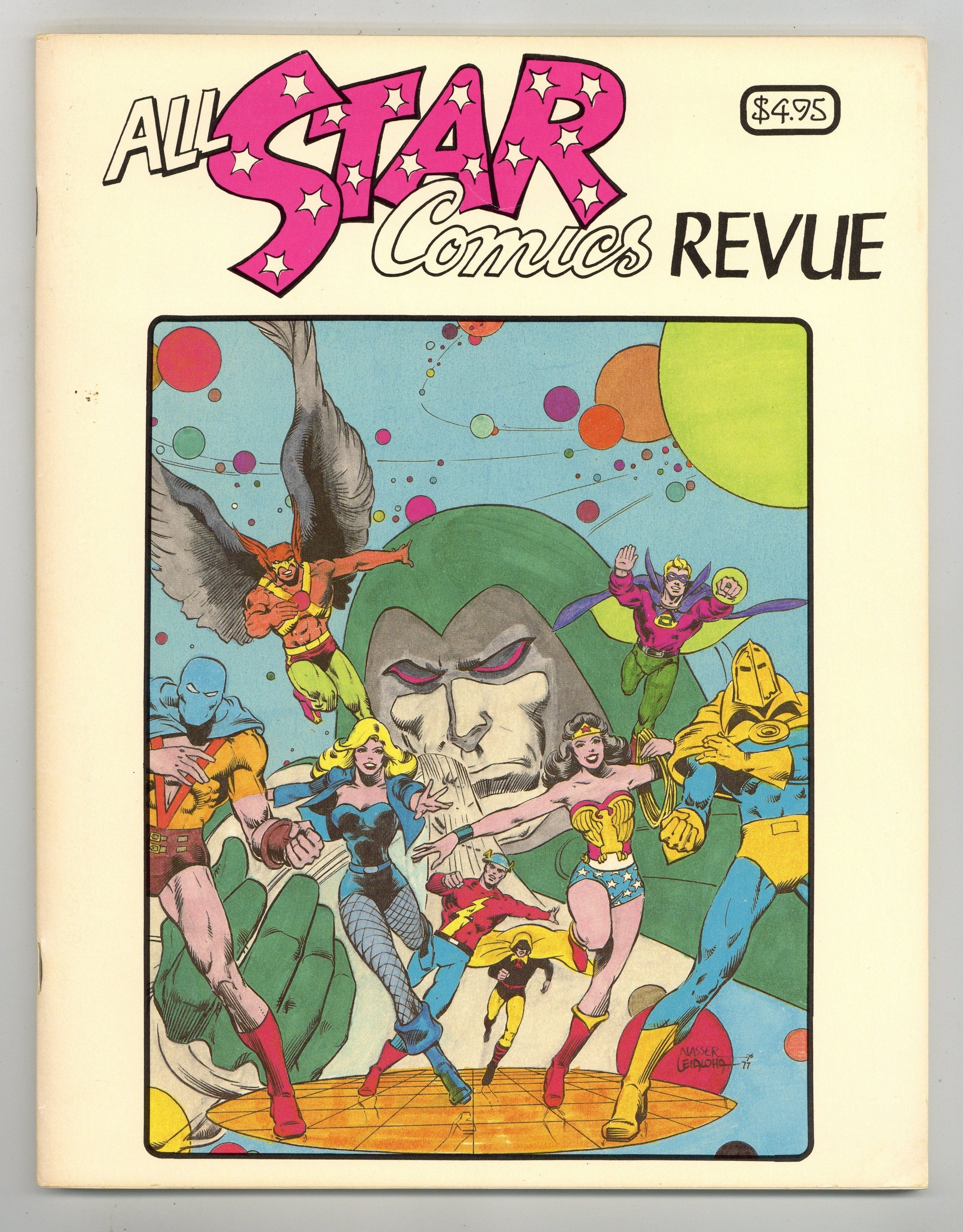 Published 1977 by David Delich.$21.00Cover by Mike Nasser and Steve Leialoha. Art by Rick Stasi & Alex Delinges.Edited by Craig Delich. A complete index to All-Star Comics with cover reproductions. Also includes JSA character bios, Junior Justice Society of America membership kits, and more. 8 1/2-in. x 11-in., 96 pages, glossy white paper stock, black and white. Cover price $4.95.