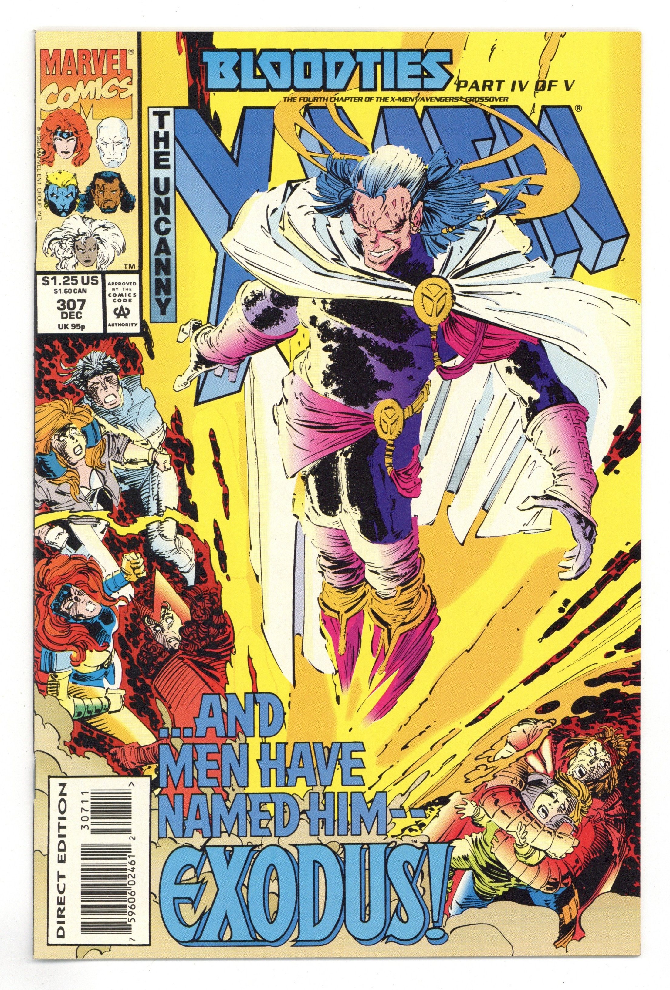 Cover by John Romita, Jr. Bloodties Part Four: Night and Fog, script by Scott Lobdell, art by John Romita Jr. and Dan Green; Genosha explodes into conflict as the X-Men and Avengers try to save Luna from Fabian Cortez. Bloodties crossover. Genosha explodes into conflict as the X-Men and Avengers try to save Luna from Fabian Cortez. Continued from Avengers West Coast (1989 Series) #101; The story concludes in Avengers (1963 Series) #369. 36 pgs., full color. $1.25. Cover price $1.25.