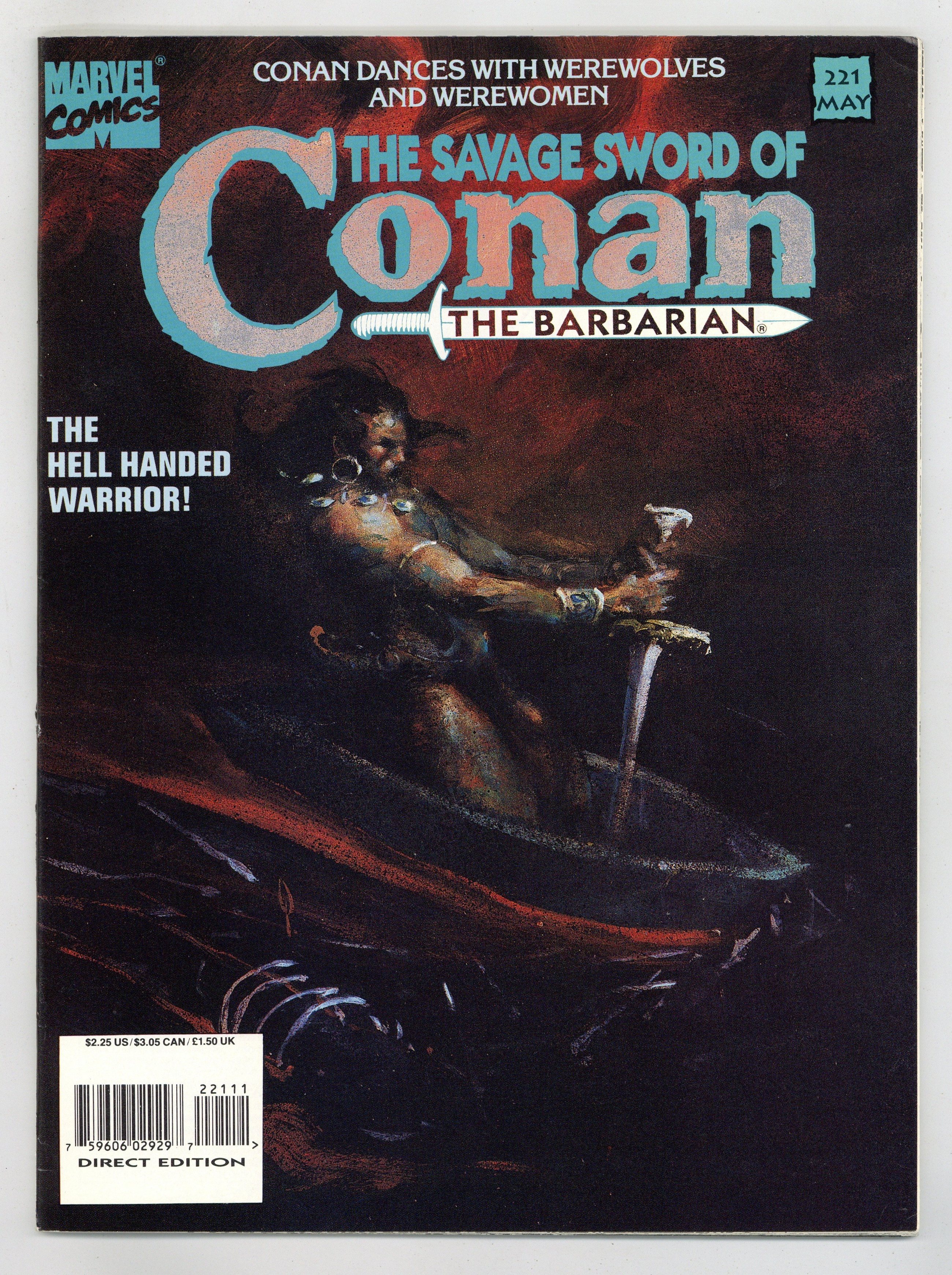 $12.50Conan stars in "Werewoman." Script by Roy Thomas, pencils by Robert Brown, inks by Rey Garcia. Conan and Fafnir star in "Death Has Four Fingers." Script by Thomas, pencils by Mike Docherty, inks by E.R. Cruz. Pin-ups (uncredited). George Pratt cover. Cover price $2.25.