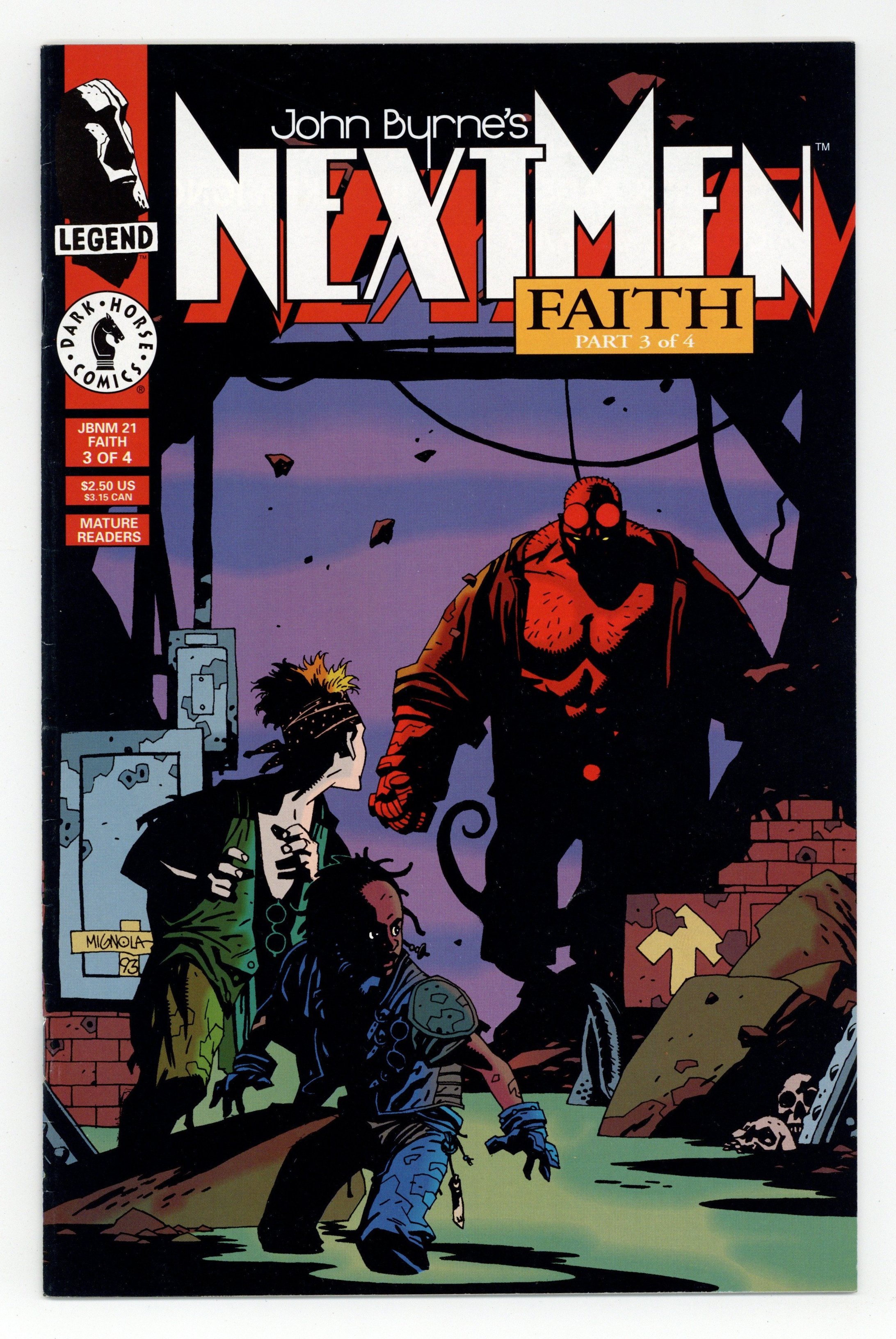 Published Dec 1993 by Dark Horse.$134.00NOTE: 1st appearance of Mike Mignola's Hellboy (1st full app. in comic books) - Faith: Part 3 of 4 - Story and art by John Byrne. Cover by Mike Mignola. Guest-starring Hellboy. When Legends clash! (Or crossover!) Presenting the first "official crossover" within the Legend line -- the Next Men meet Mike Mignola's HELLBOY! Danny is actually the lucky one to have his path cross that of the World's Greatest Paranormal Investigator, in a segment drawn by guest Legend star Mike Mignola. Meanwhile, we present the life of Christ as seen through the eyes of Jack, whose imagination infuses the well-known story with some familiar faces. In the ongoing saga of Mark, a.k.a. MIV, we find out just what he's been doing during the missing seven years of his life. 36 pages, full color. Cover price $2.50.