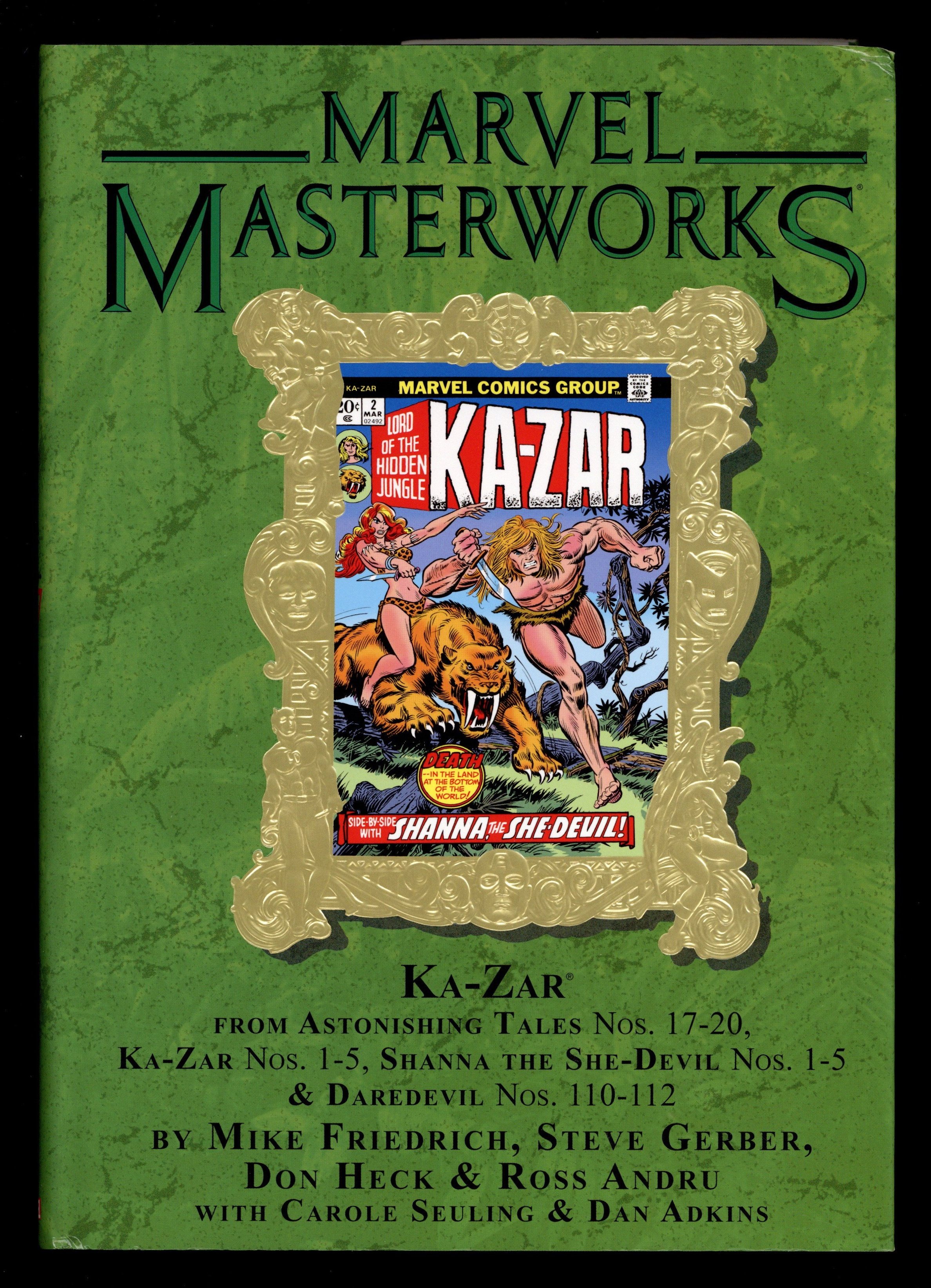 Ka-Zar meets Shanna for the first time in this massive Marvel Masterworks! Two heroes from separate walks of life - but it was inevitable that their paths would cross deep in the jungle after both rejected the modern world. But first, Ka-Zar must conquer a madman powered by Super-Soldier serum, the twin villain Gemini, and his own brother, the Plunderer - while Shanna hunts her father's killers, explores the jungle's mysteries, and battles the Mandrill and priestess Nekra! As their paths diverge, Ka-Zar encounters an evolved incarnation of a Savage Land nemesis in adventures with Bobbi Morse, the S.H.I.E.L.D. agent known as Mockingbird! Meanwhile, Daredevil helps Shanna complete her quest to avenge her father!